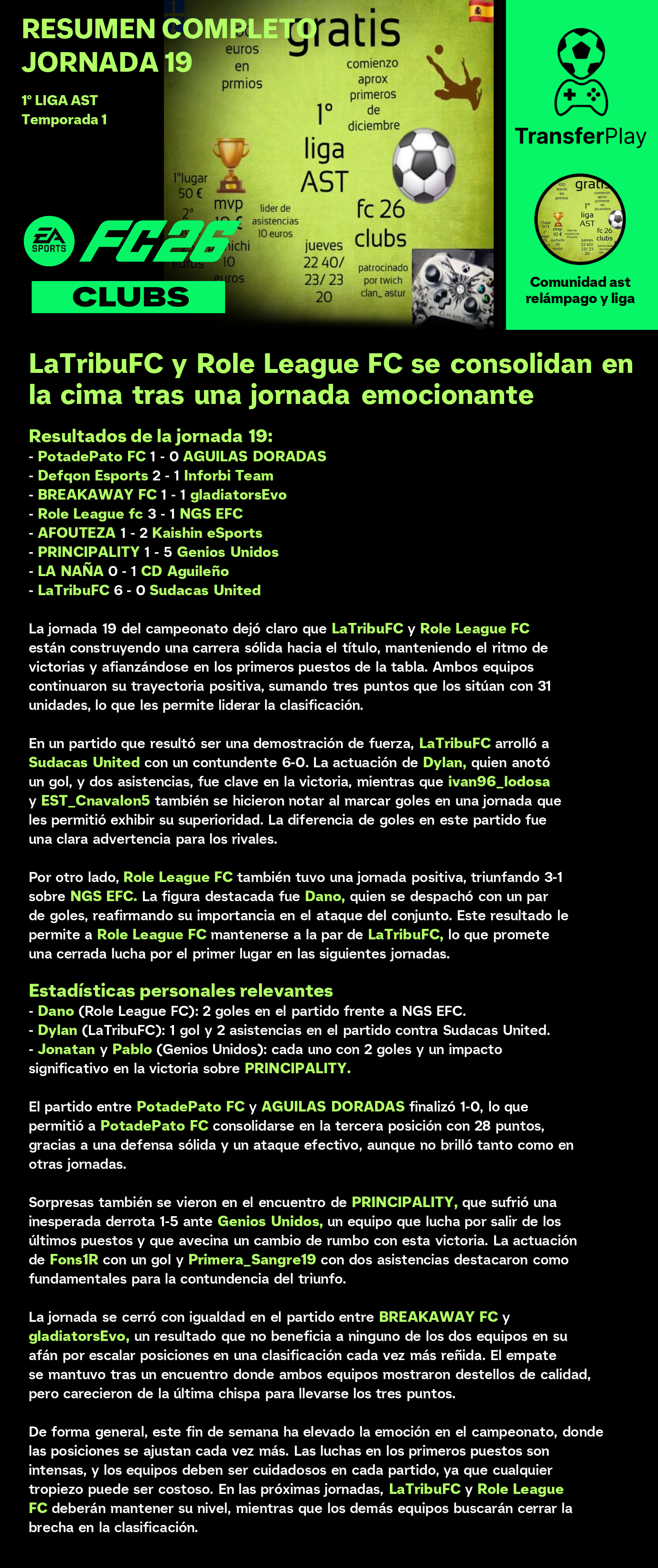 TURNIER ERSTELLT AUF TRANSFERPLAY von COMUNIDAD AST RELÁMPAGO Y LIGA