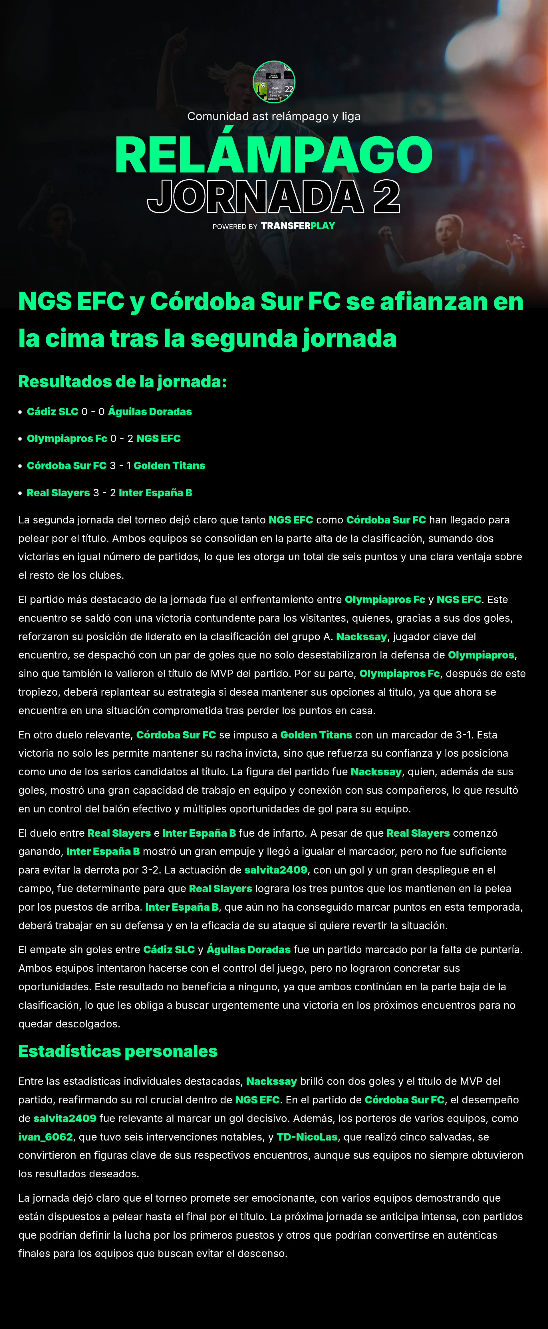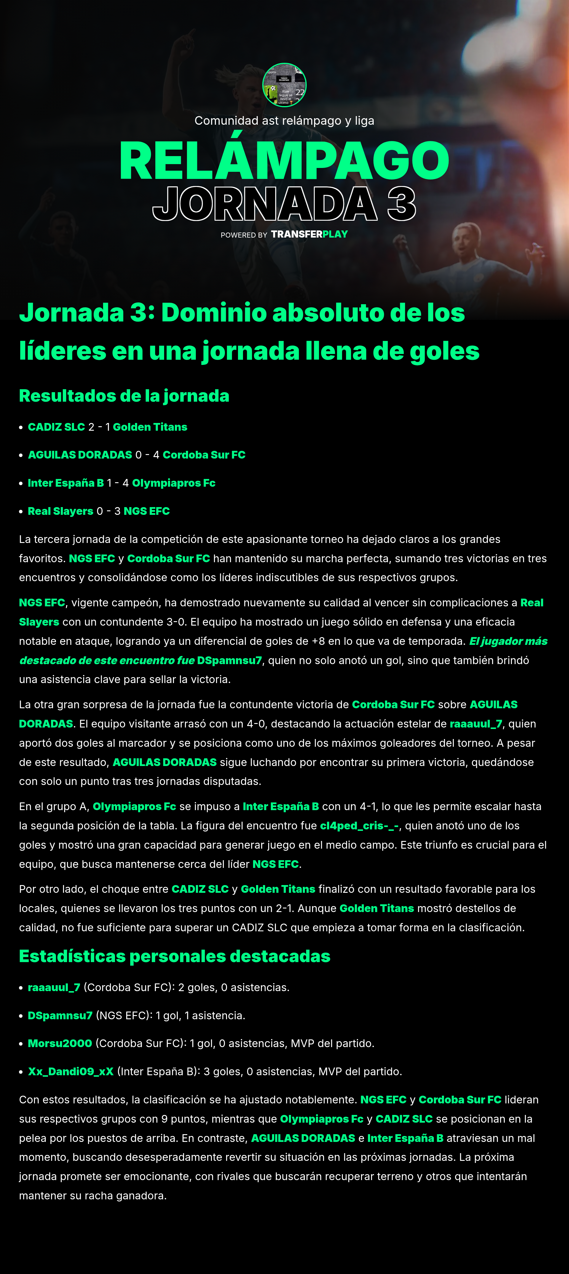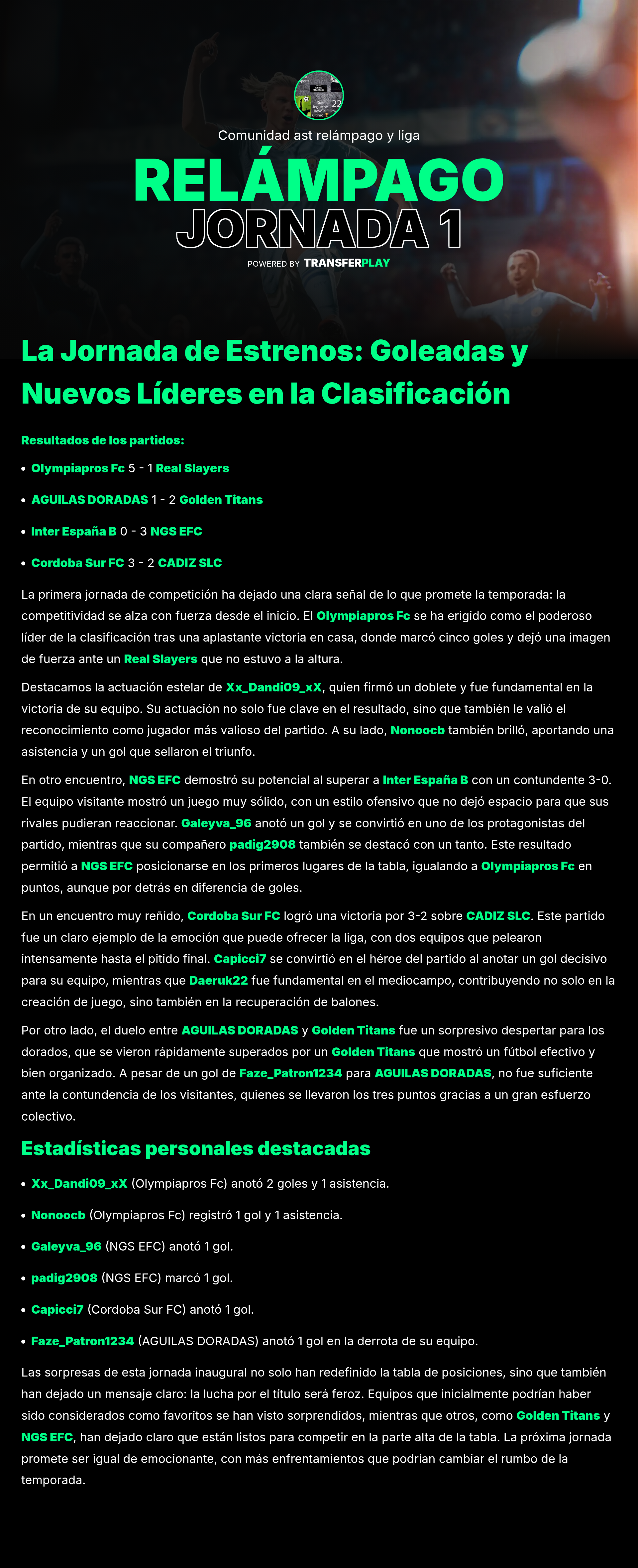 Una actuación estelar de Xx_Dandi09_x fue crucial para la victoria de Olympiapros FC sobre Inter España B. Con un hat-trick impresionante, ahora se sitúa como uno de los máximos goleadores de la jornada.