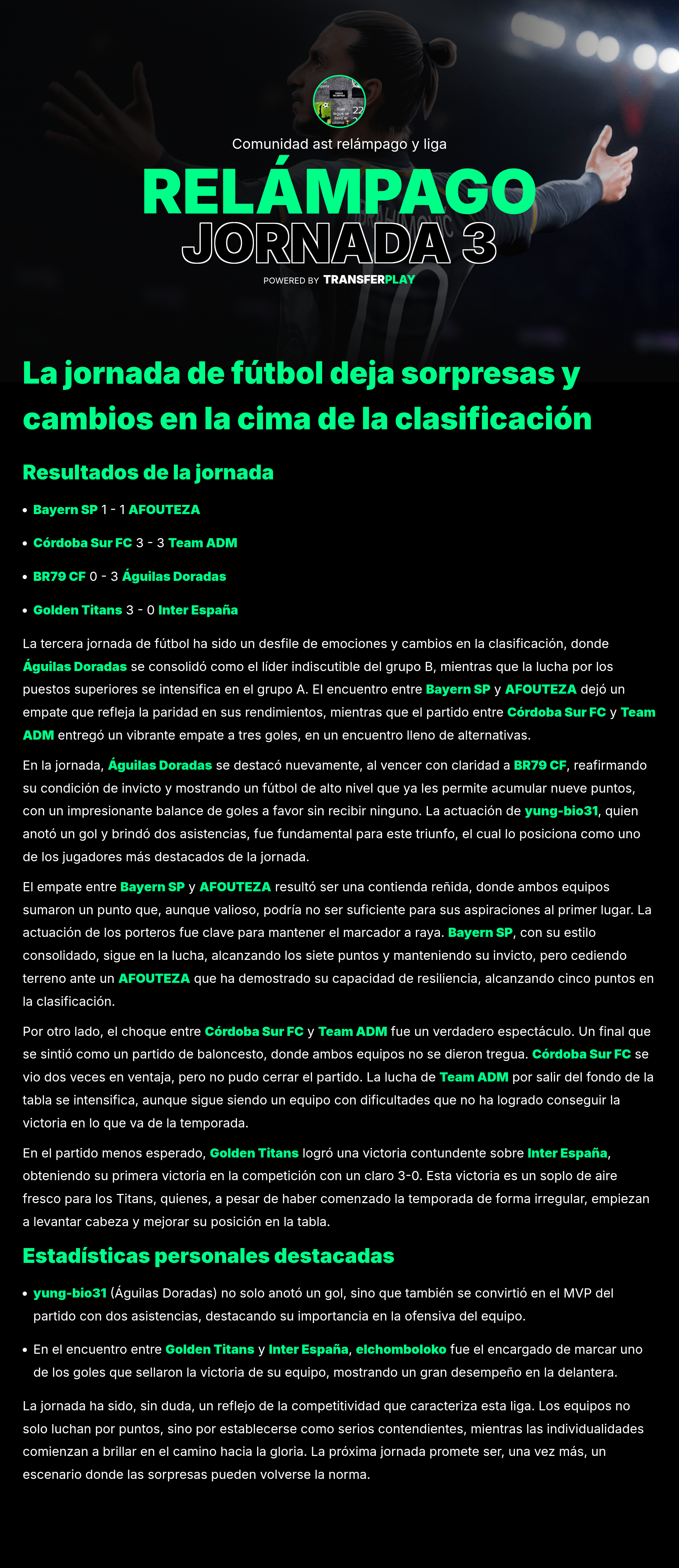 Un jugador destacado en el emocionante 3-3 fue Carrasko9, anotando un gol y mostrando una gran habilidad en el campo. Su contribución fue vital para el equipo.