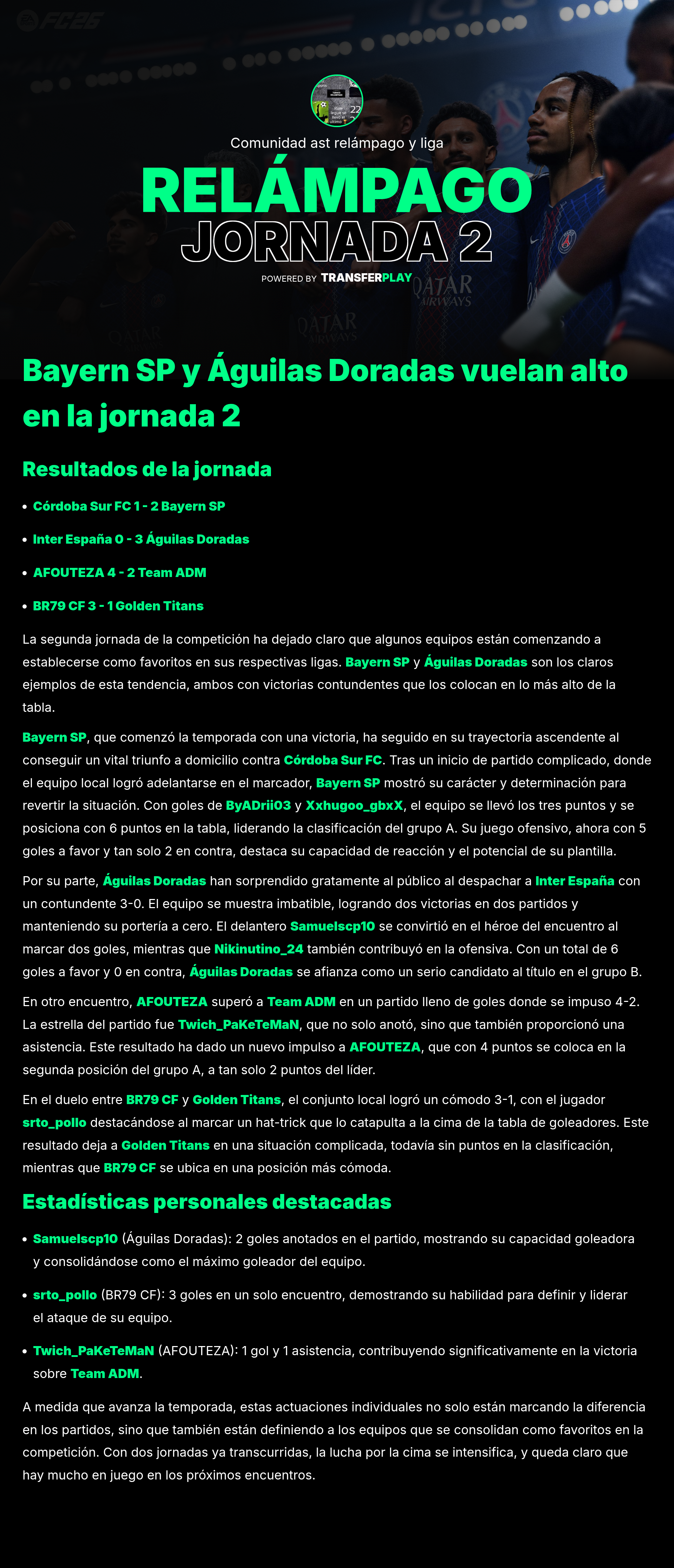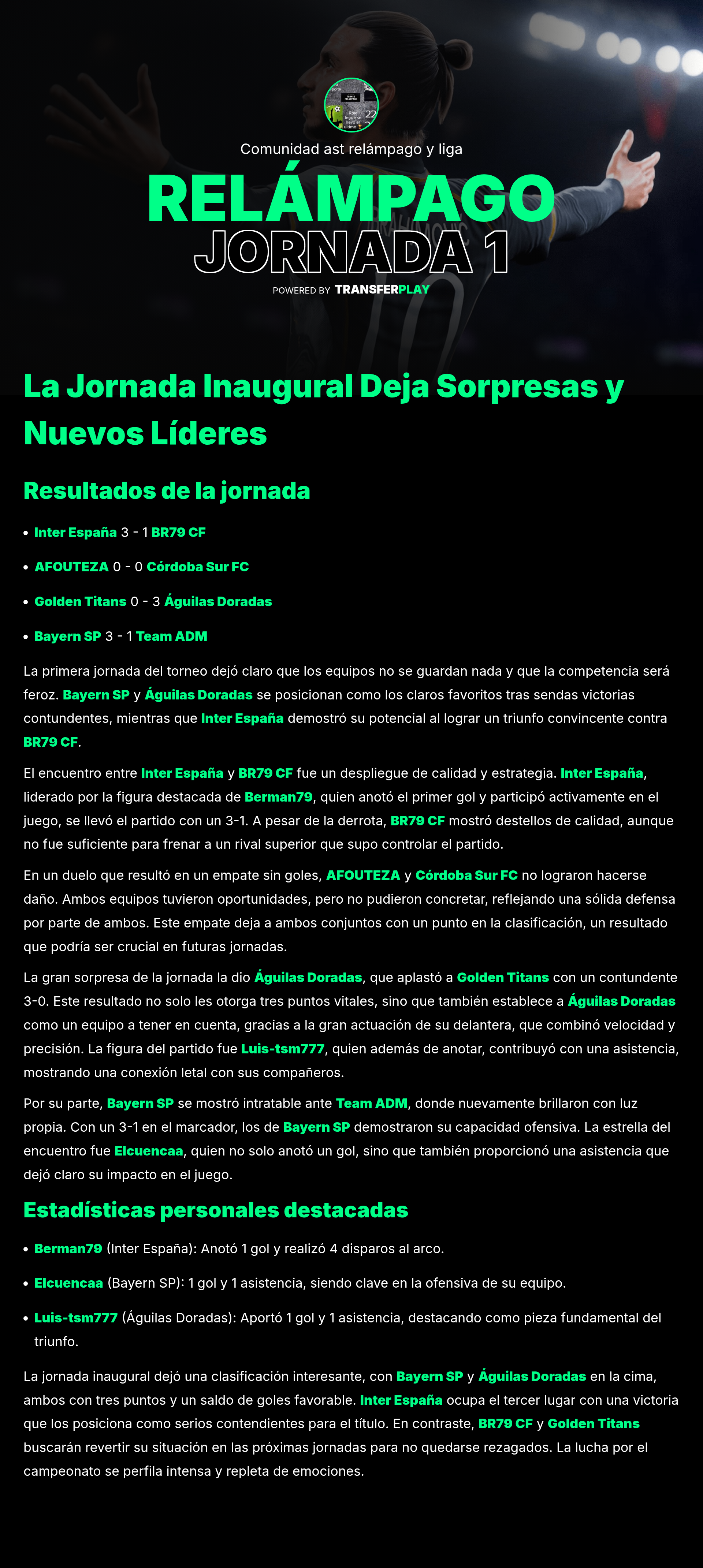TURNIER ERSTELLT AUF TRANSFERPLAY von COMUNIDAD AST RELÁMPAGO Y LIGA