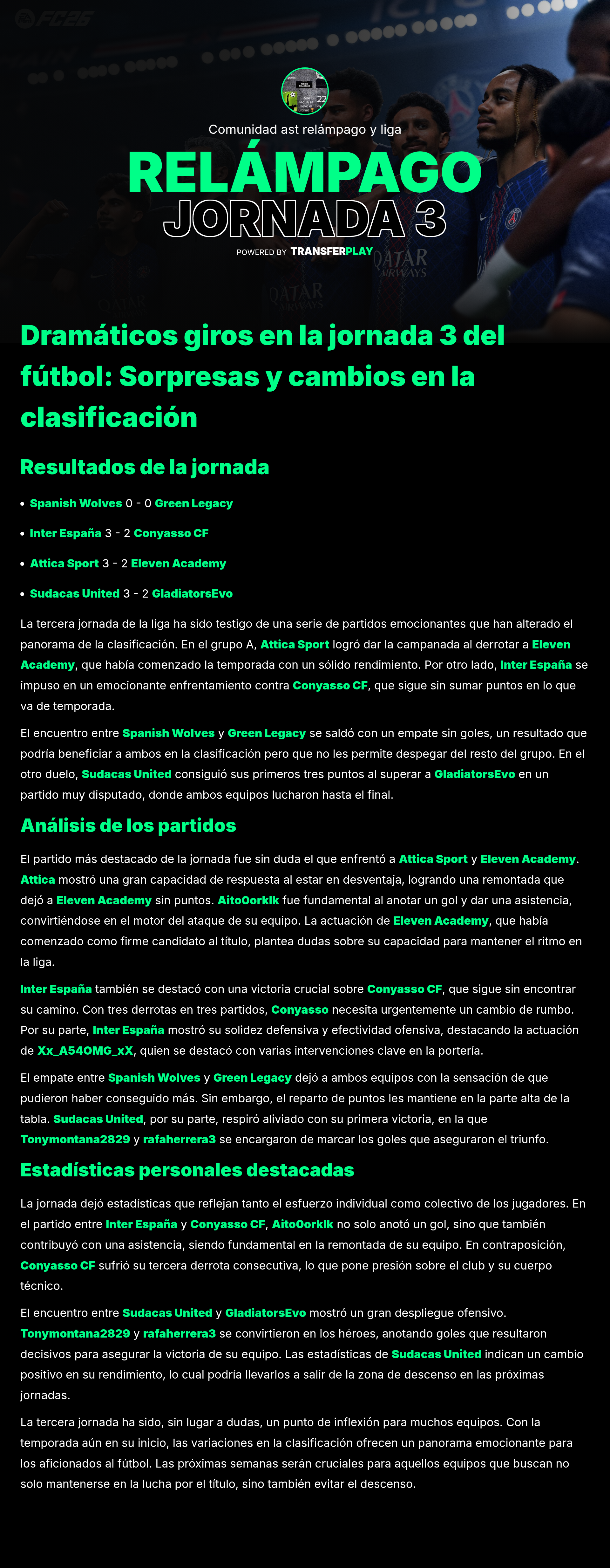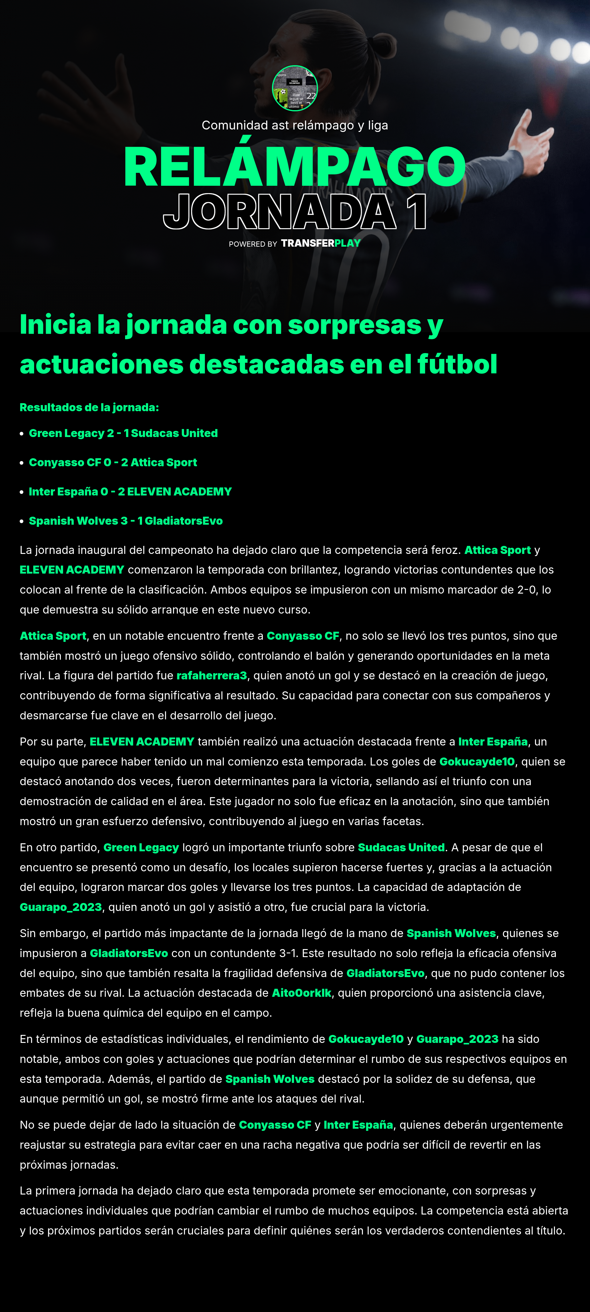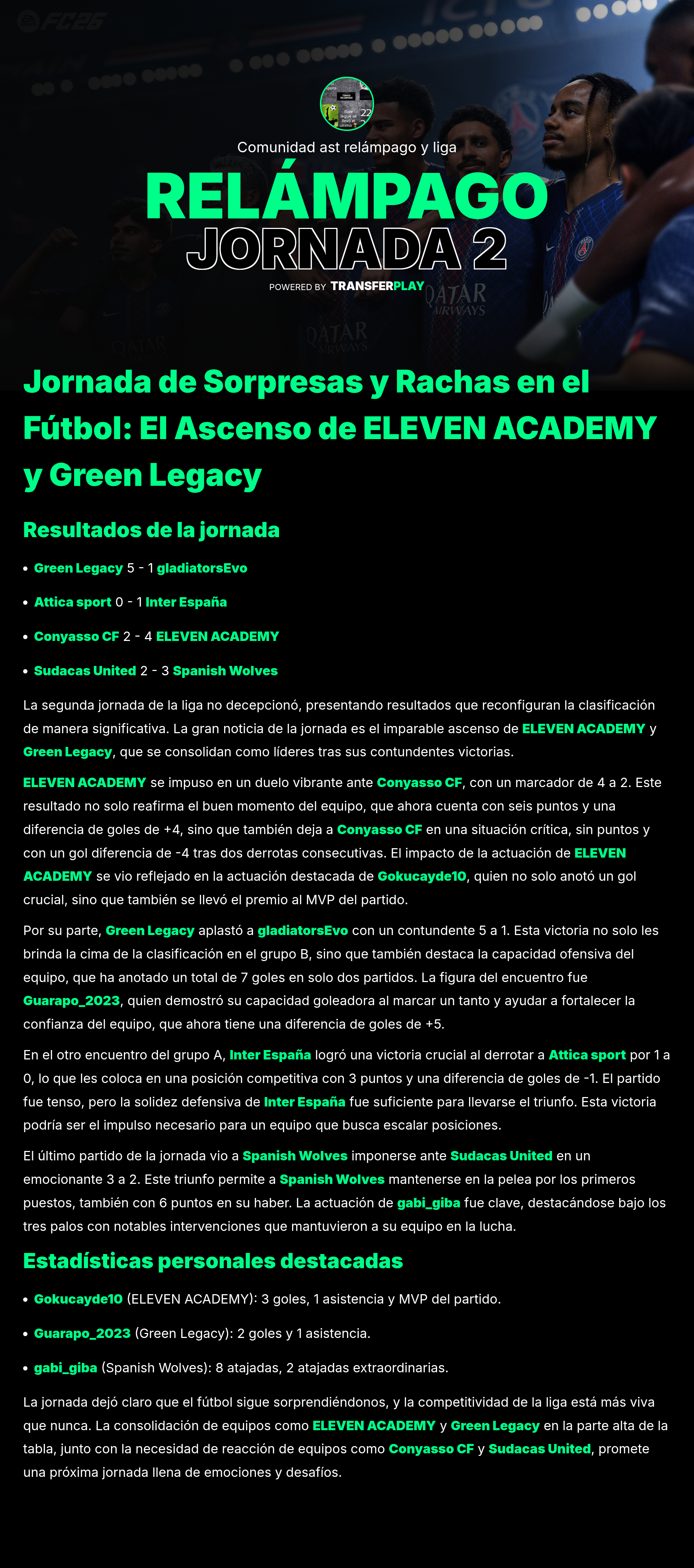 En un partido que prometía emoción, Spanish Wolves y Green Legacy no lograron romper el cero. Con ambos equipos buscando el triunfo, el empate dejó a los aficionados con ganas de más. Las defensas se impusieron, pero ¿será que no hubo chispa en el ataque?