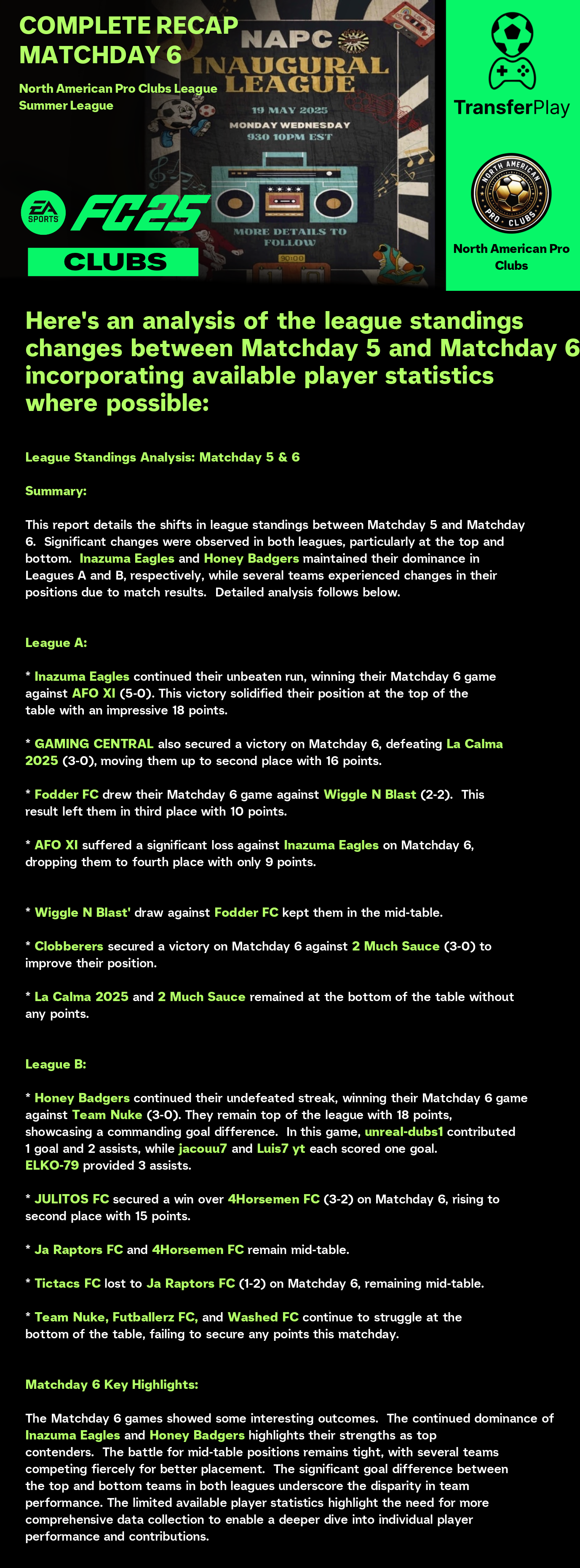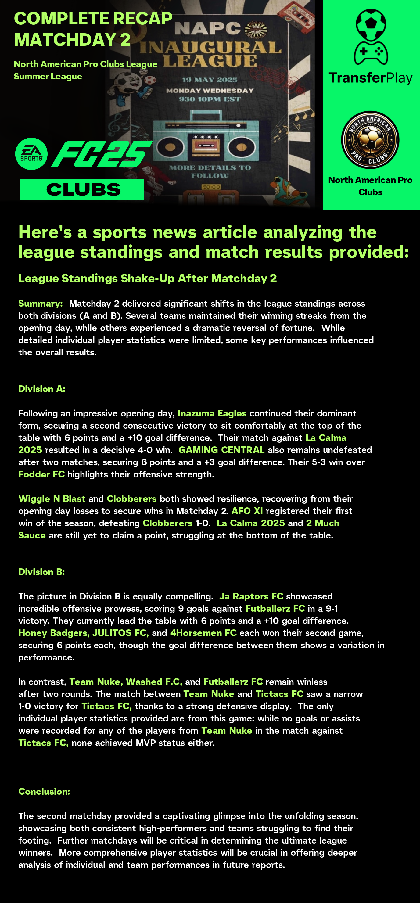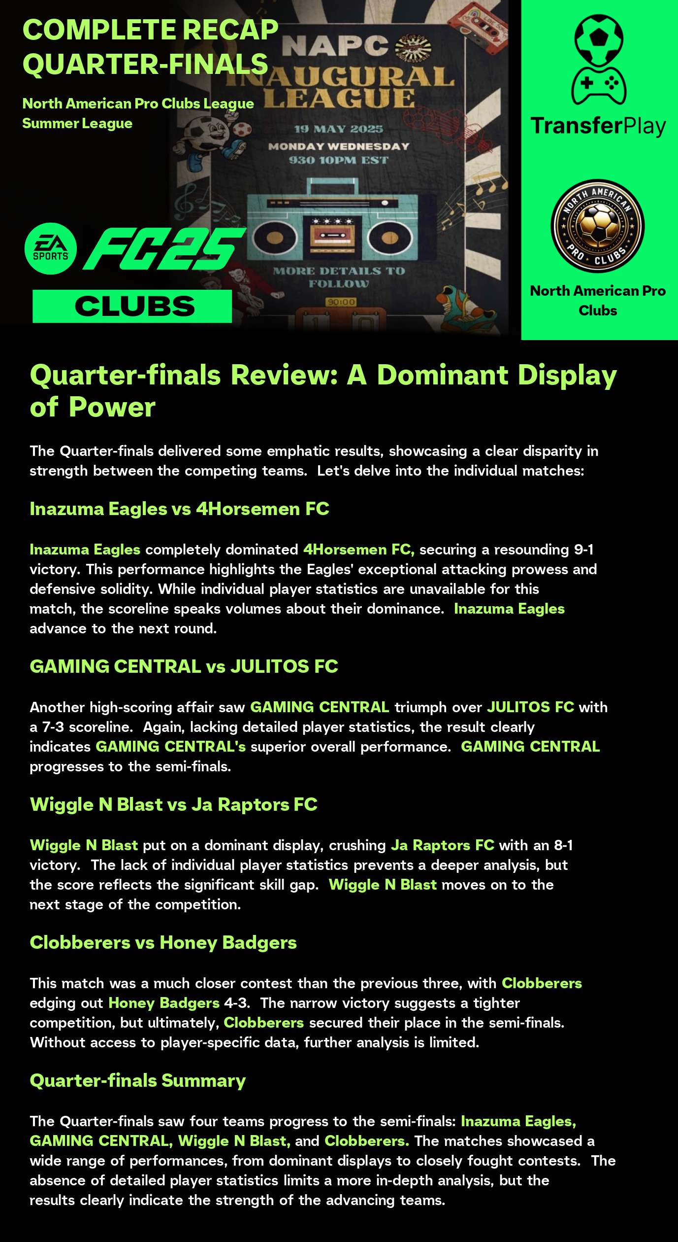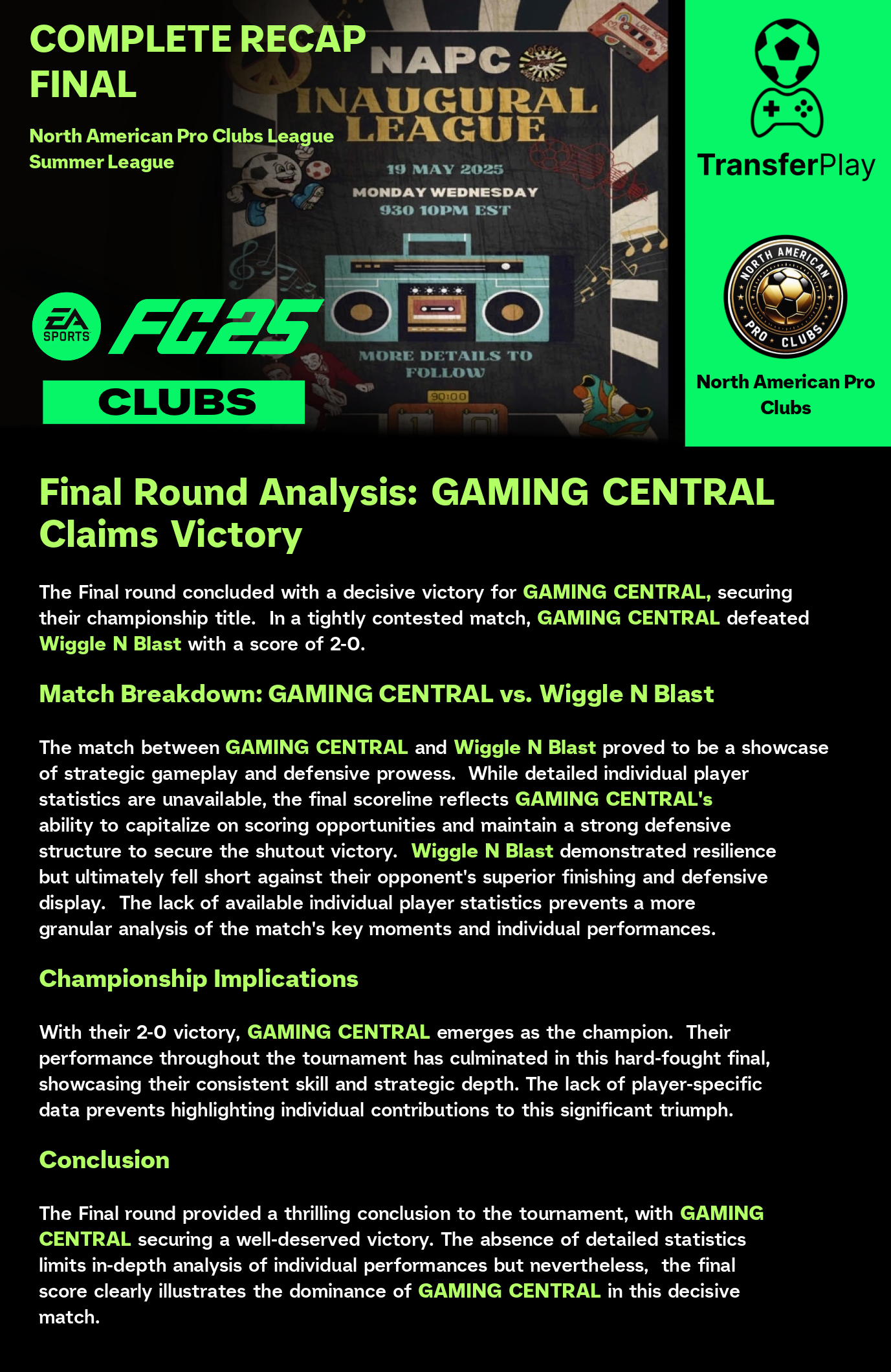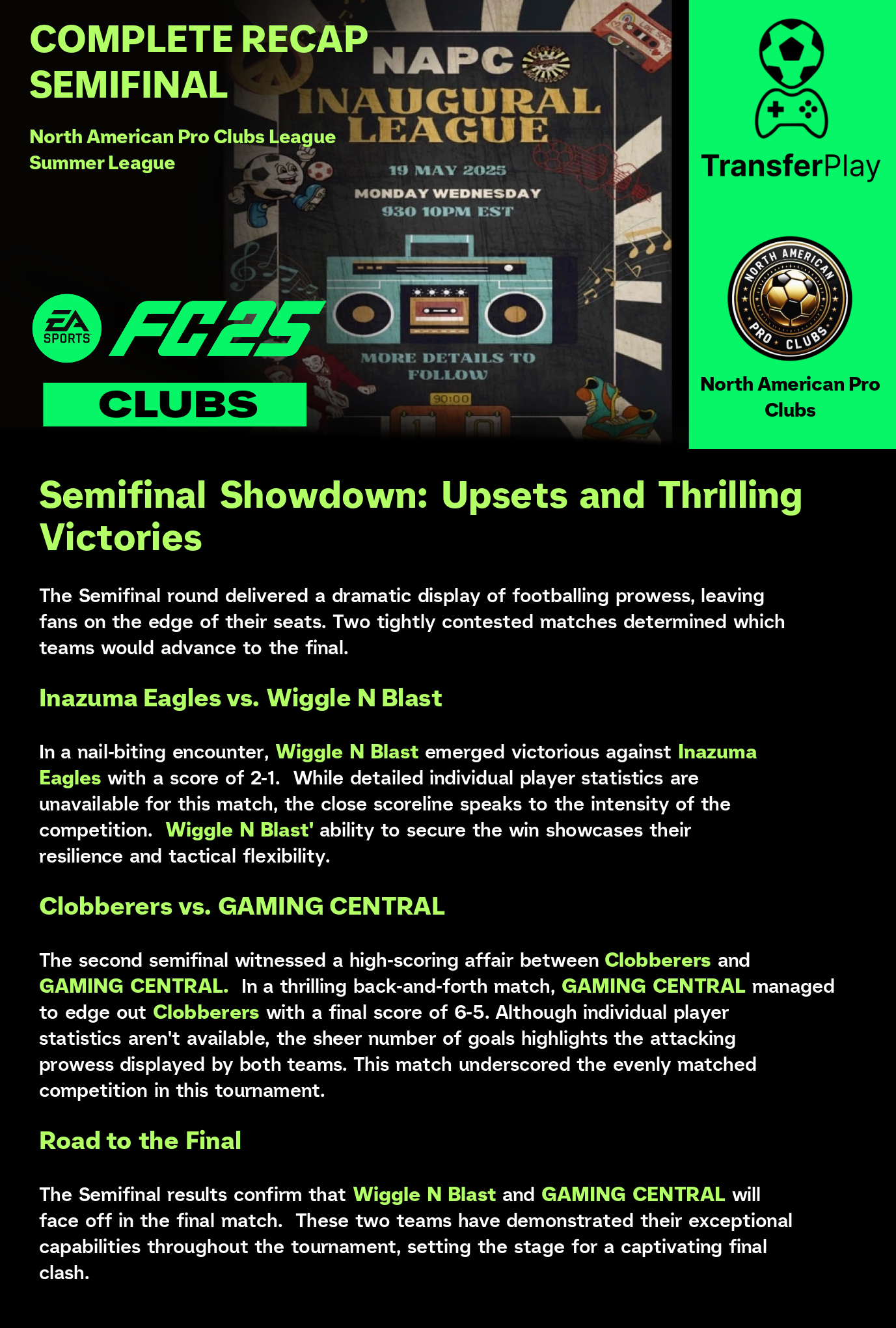 TOURNOI CRÉÉ SUR TRANSFERPLAY par NORTH AMERICAN PRO CLUBS