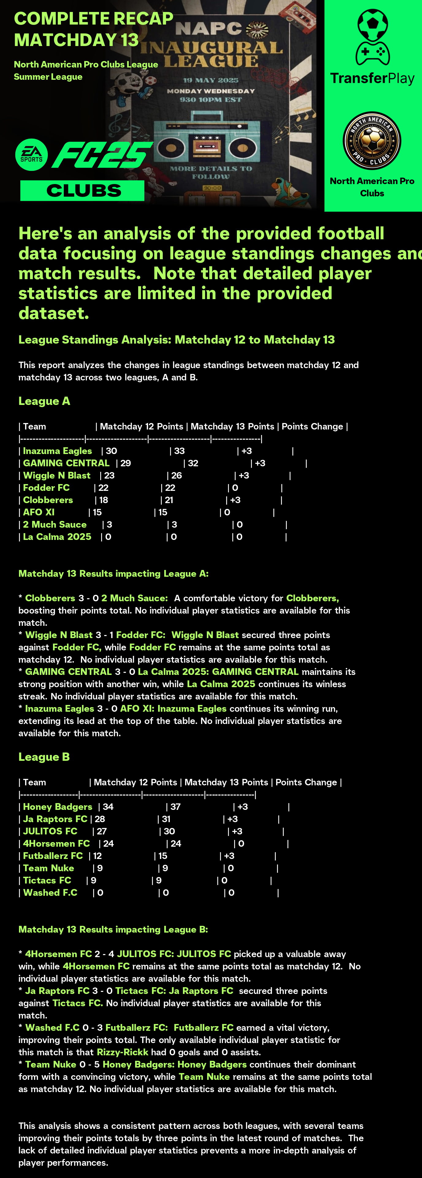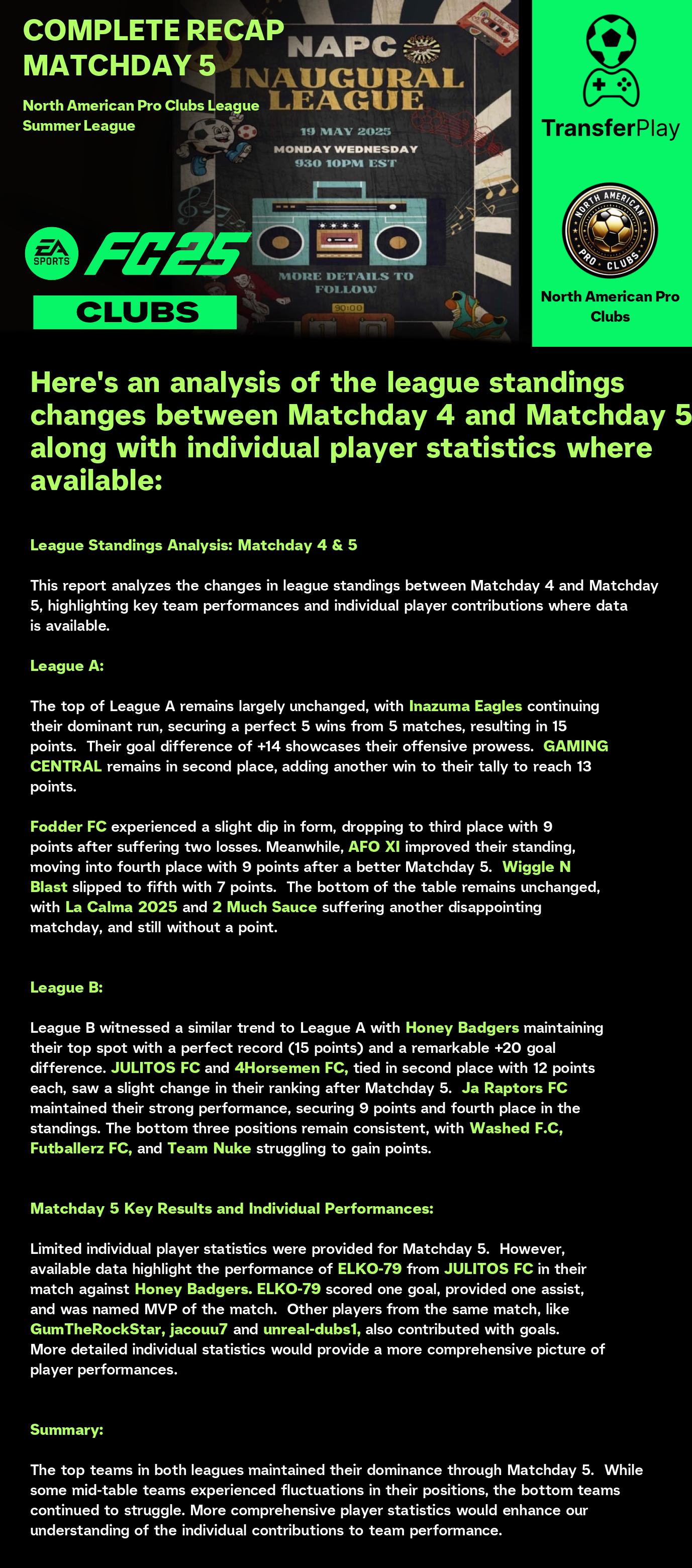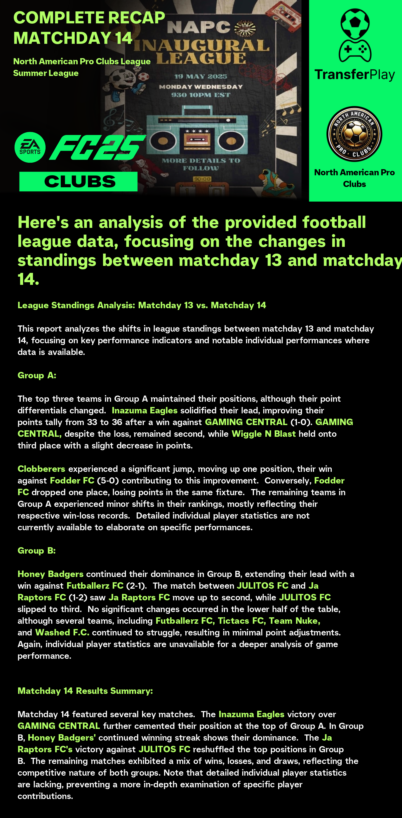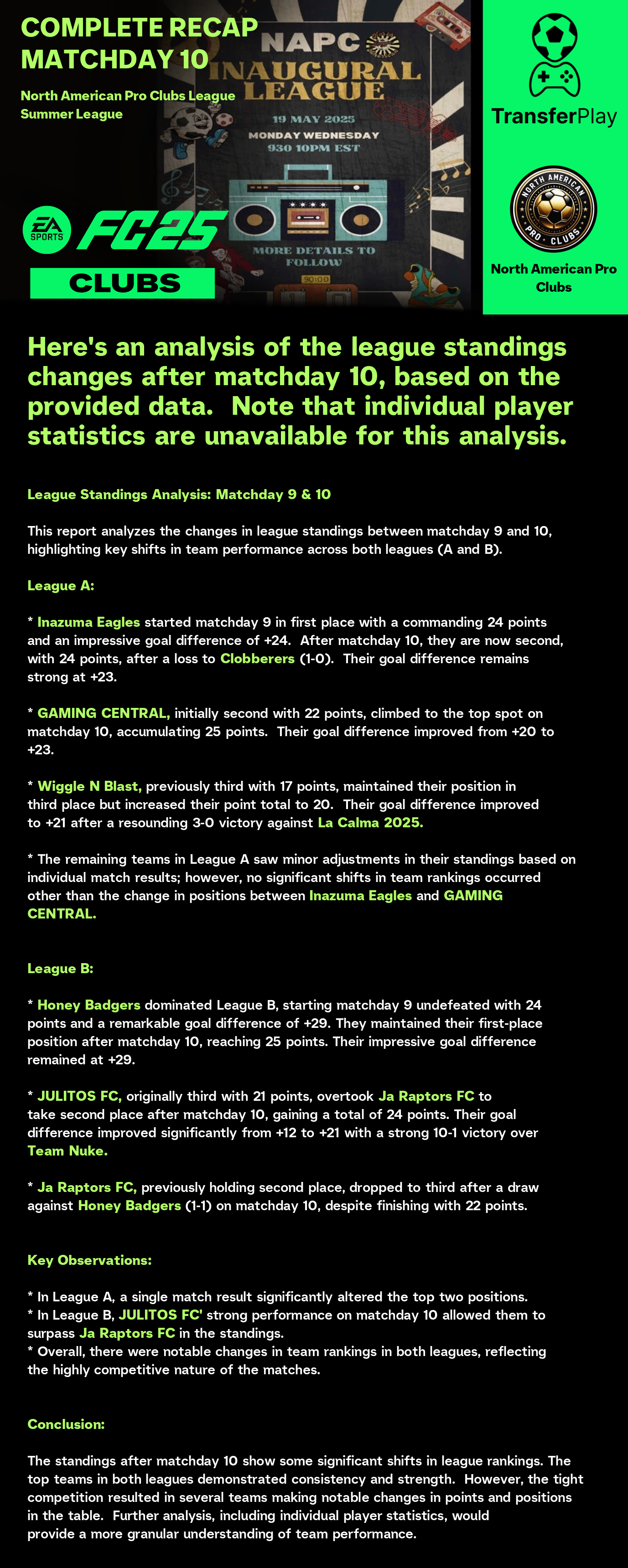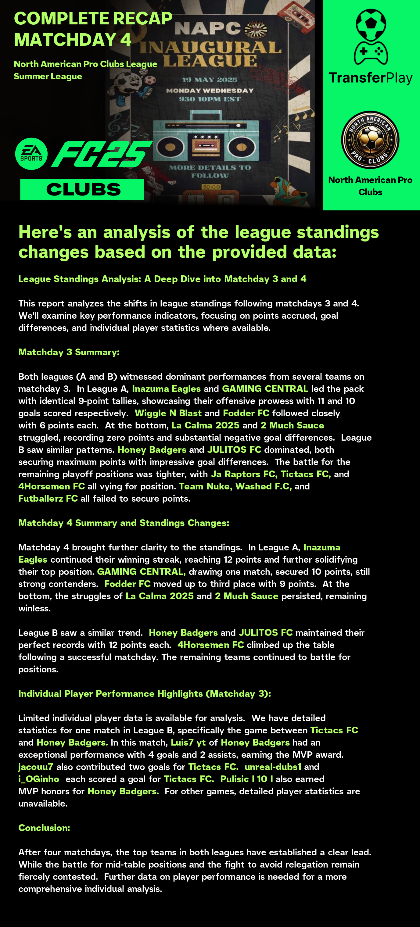 TOURNOI CRÉÉ SUR TRANSFERPLAY par NORTH AMERICAN PRO CLUBS