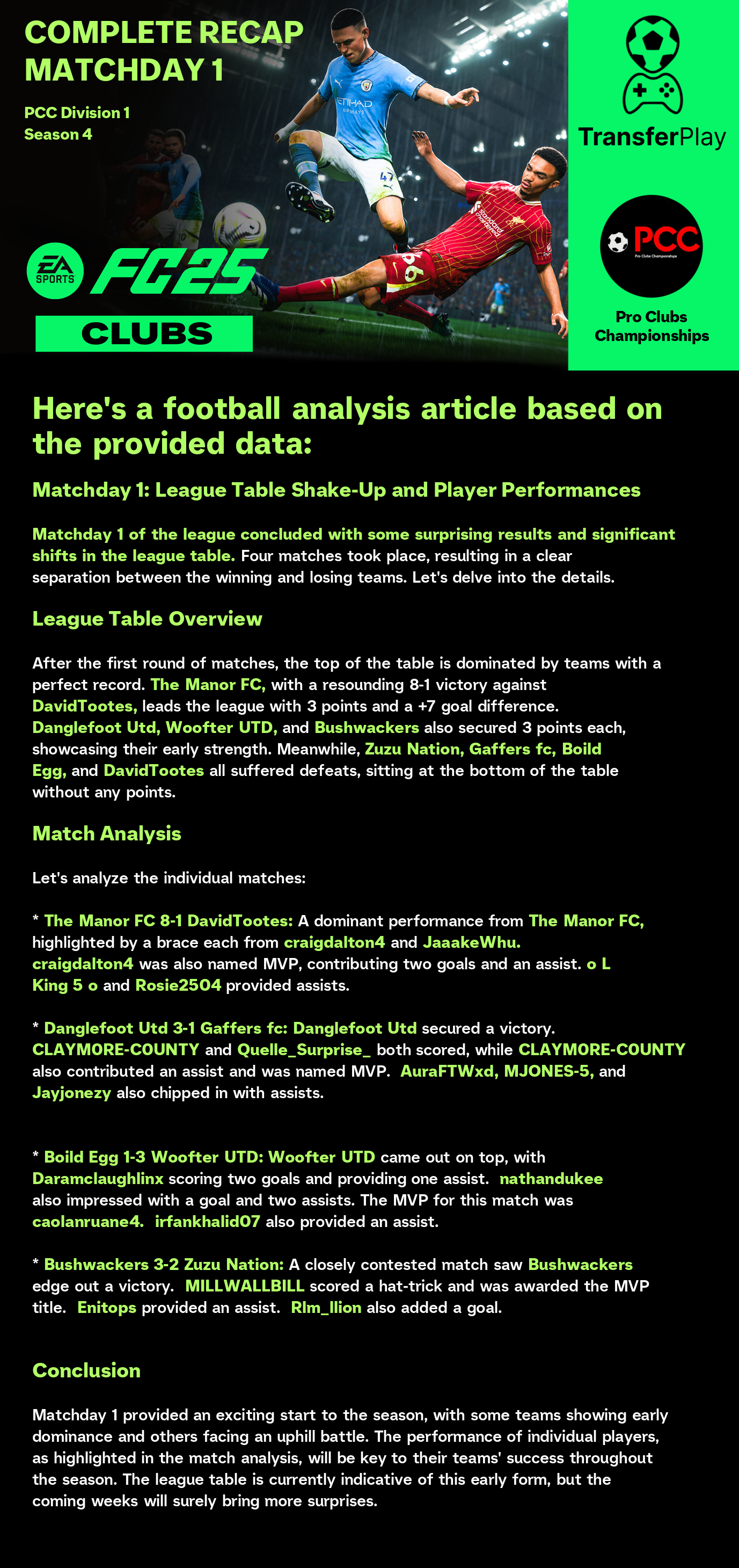 KRagon13's incredible hat-trick propelled DavidTootes to a 3-1 victory against Zuzu Nation. His clinical finishing secured the win, making him a key player to watch!