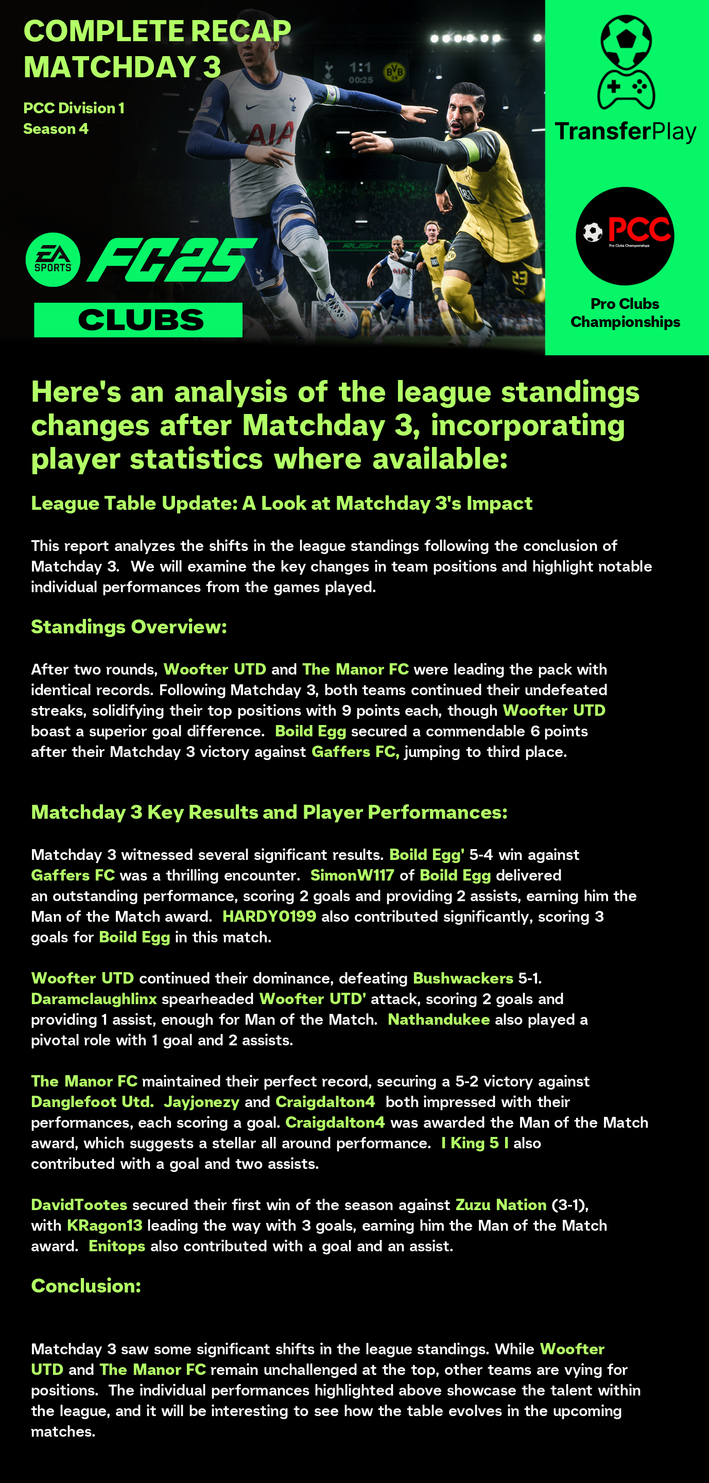Boild Egg's HARDY0199 had a day to remember, scoring an impressive hat-trick against Gaffers fc. His goals were crucial in securing the win for his team. What a fantastic individual performance!