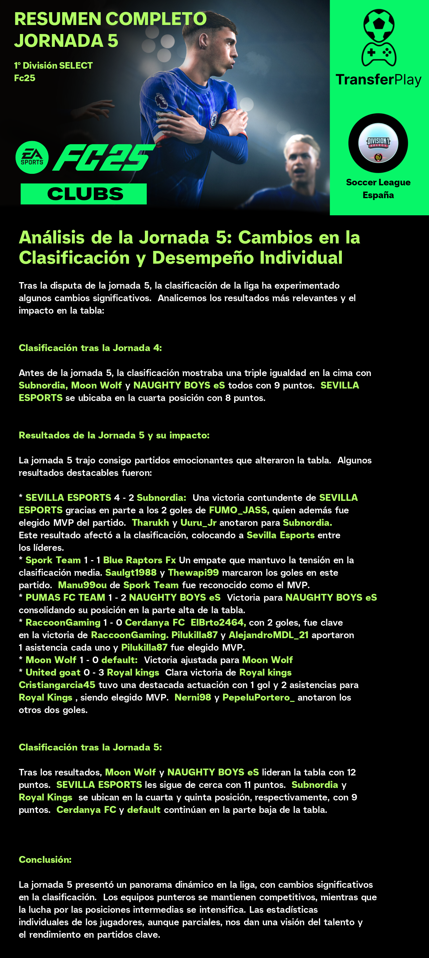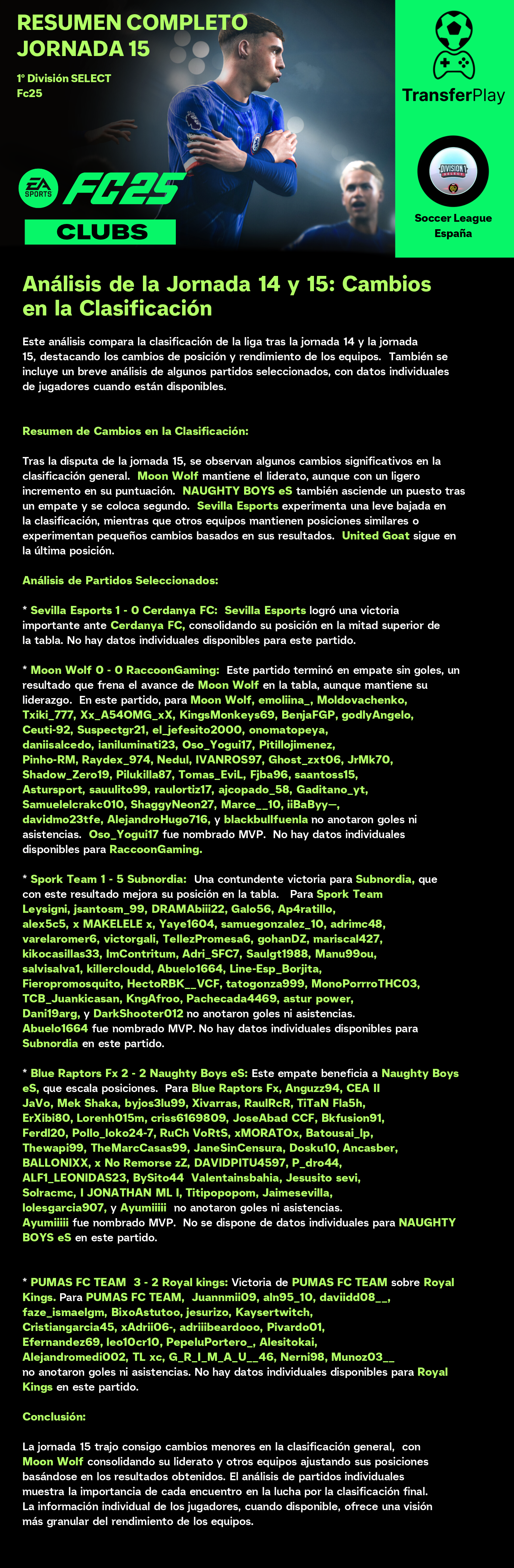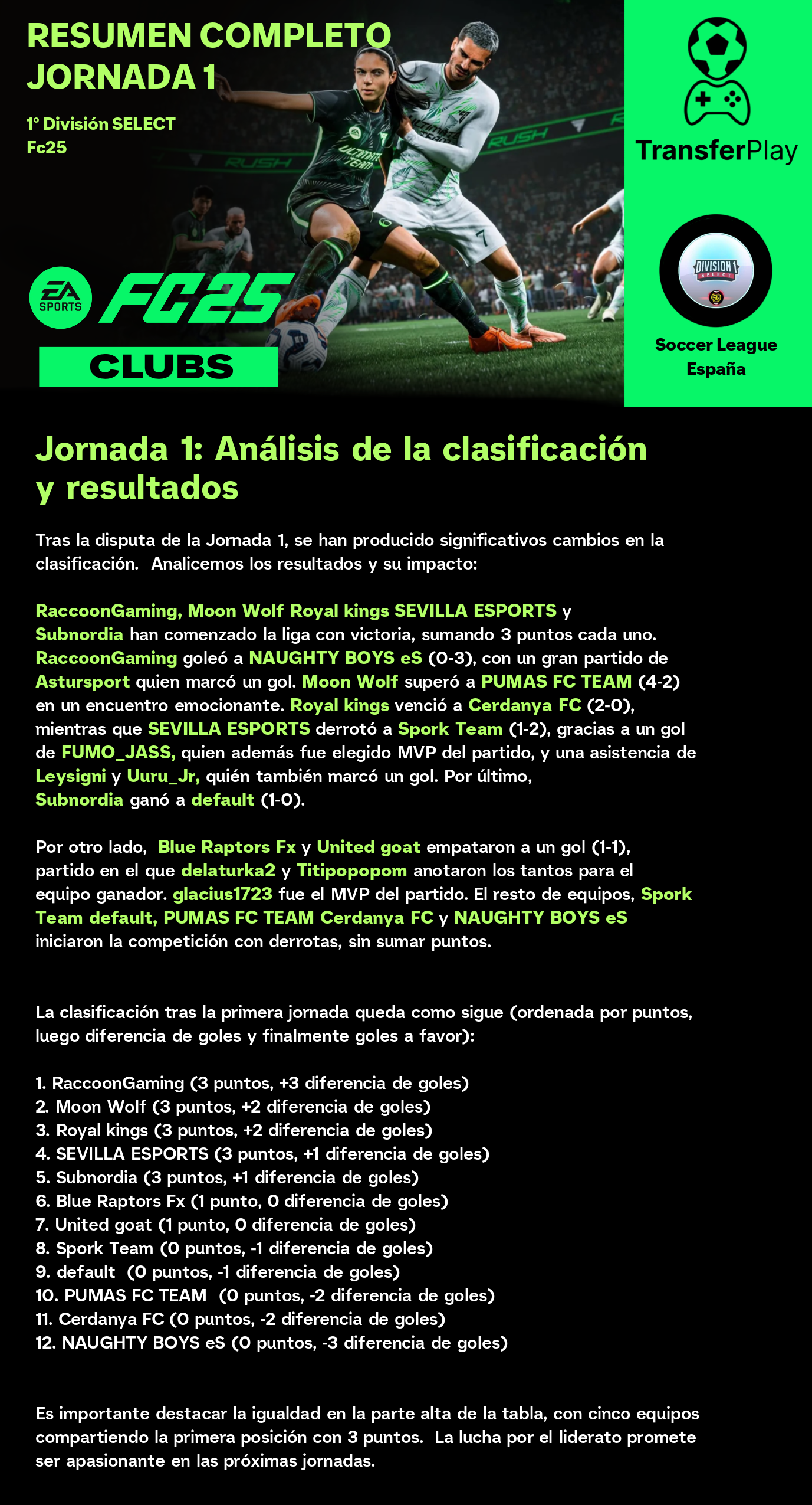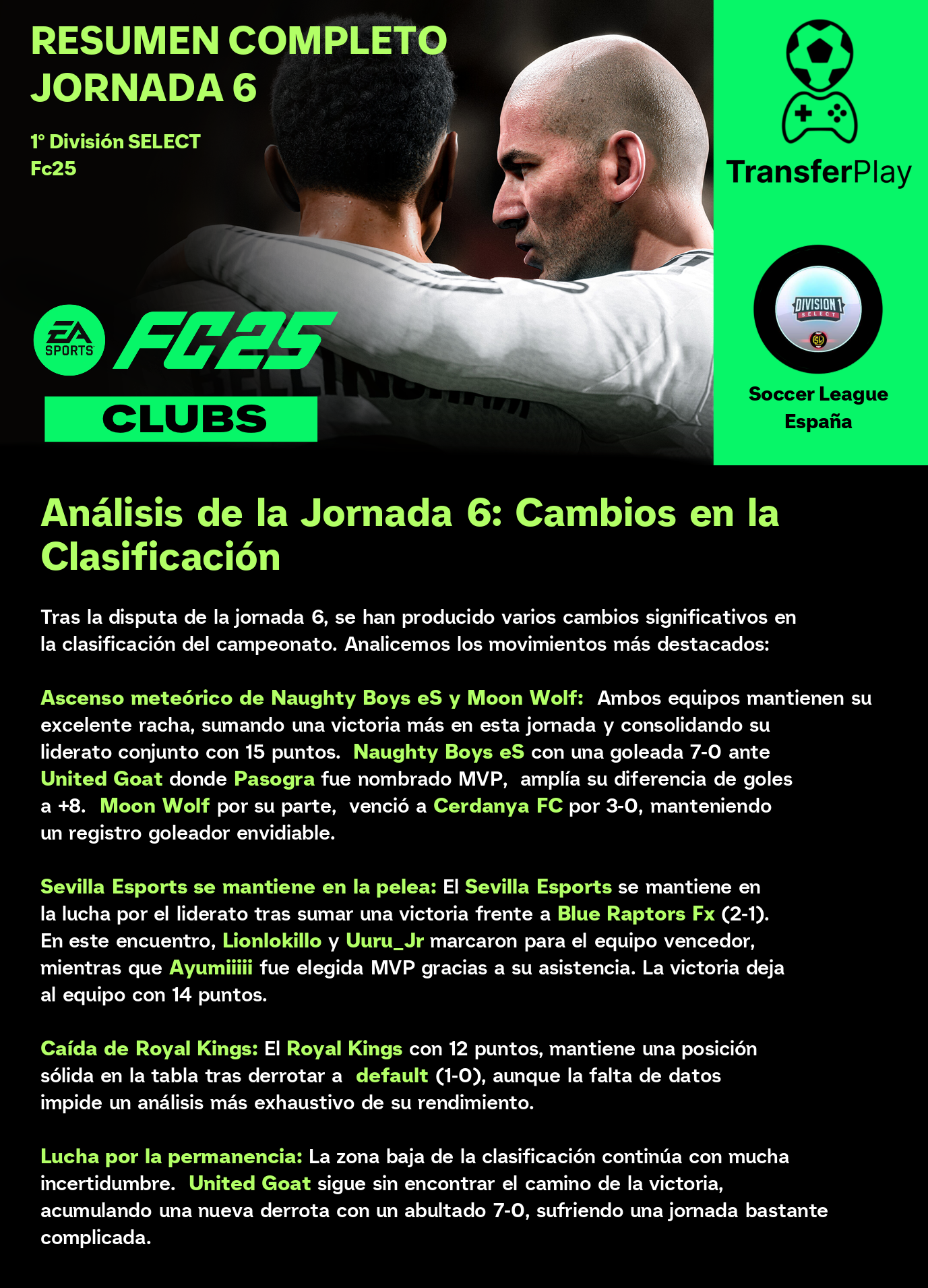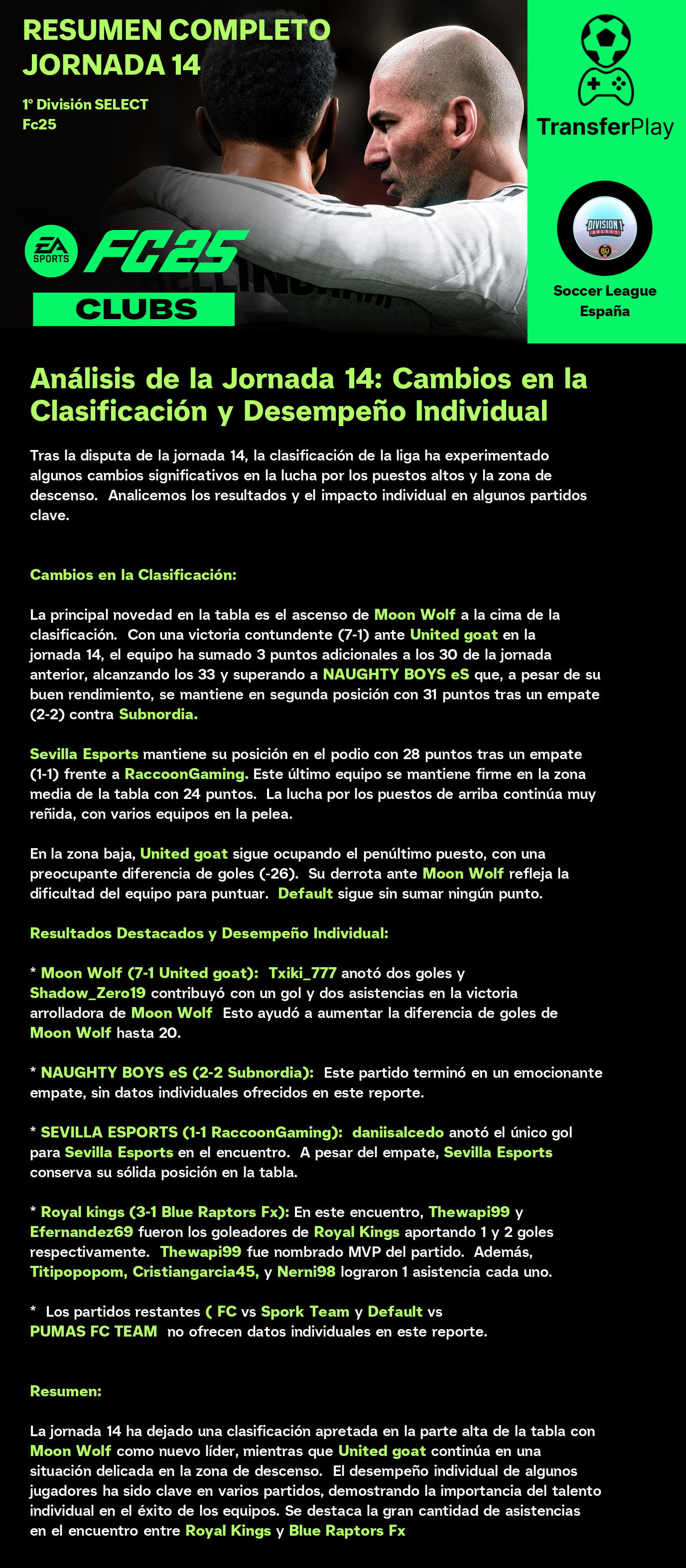 Un partido sin goles dejó a Moon Wolf y RaccoonGaming con un punto cada uno. Aunque el partido estuvo lleno de intensidad, la falta de goles dejó a los aficionados con ganas de más. Un resultado que no beneficia a ninguno de los dos equipos en sus objetivos de liga.