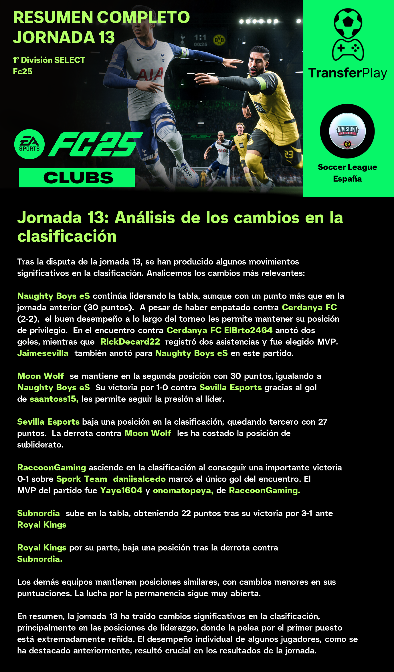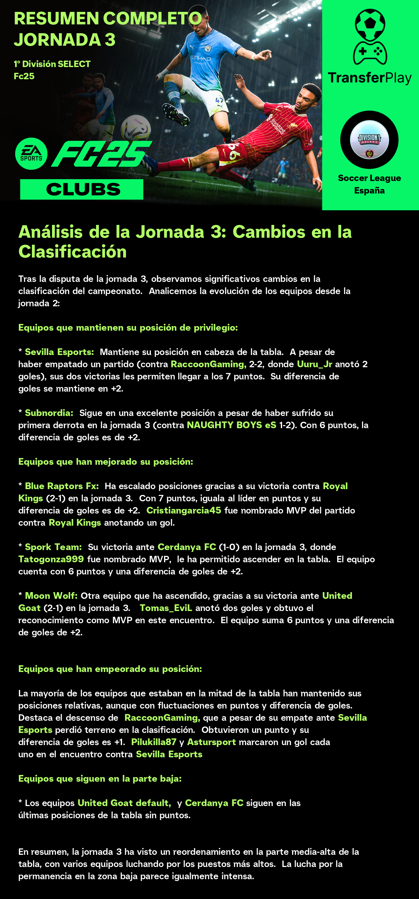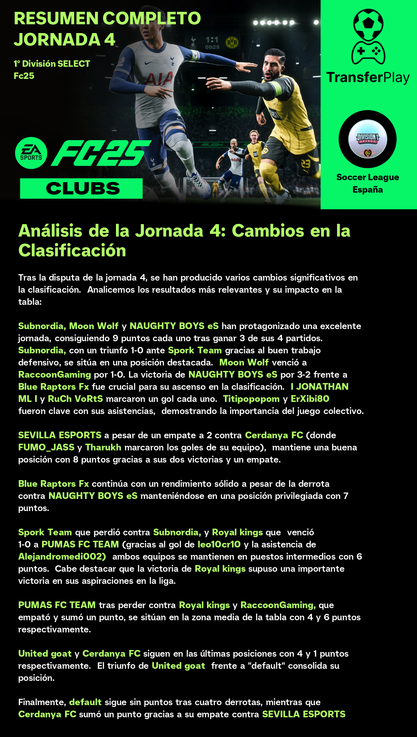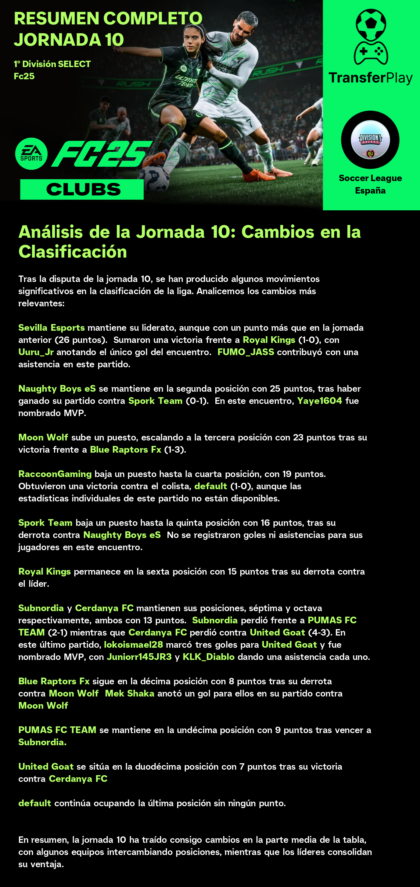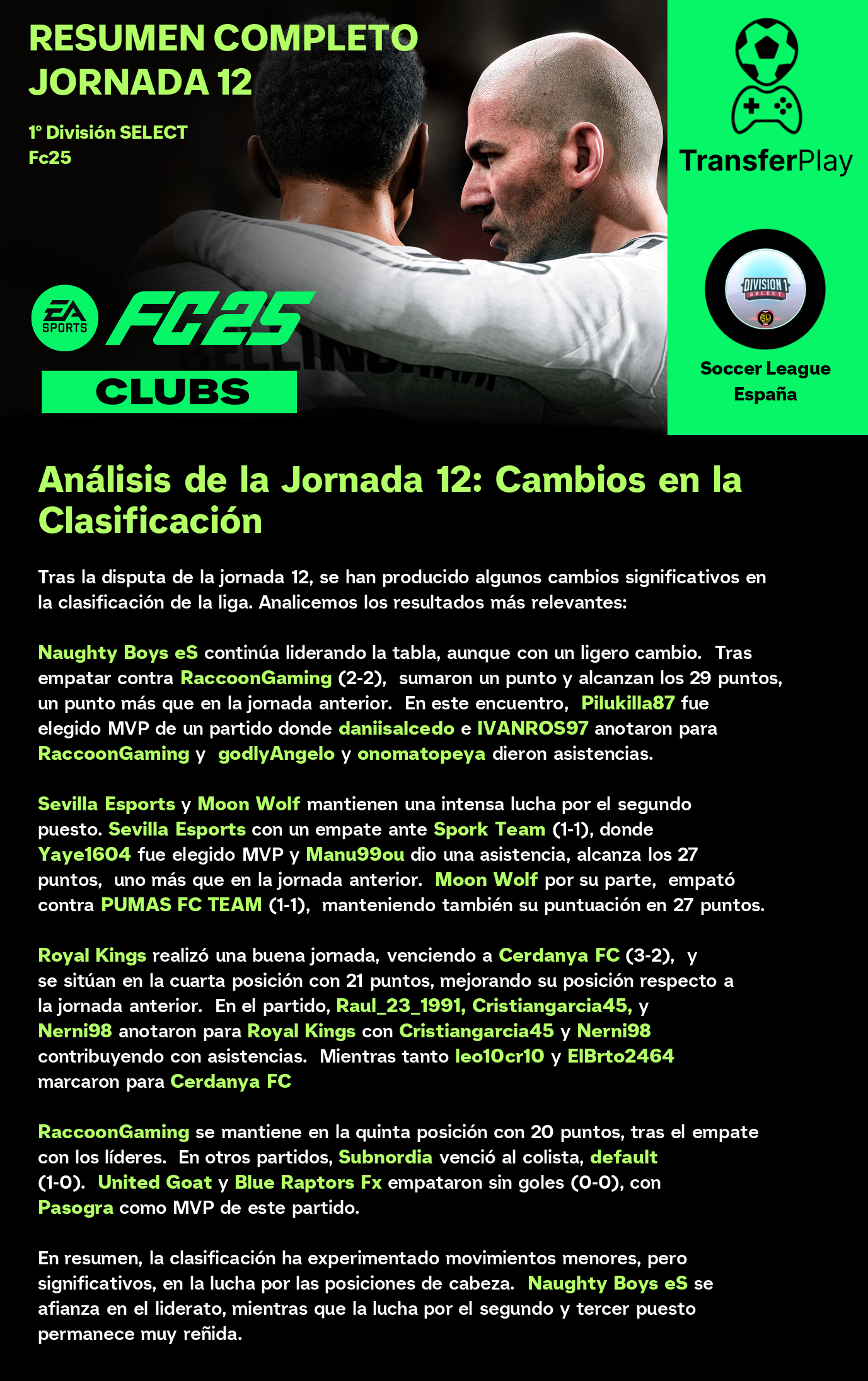Un partido sin goles dejó a Moon Wolf y RaccoonGaming con un punto cada uno. Aunque el partido estuvo lleno de intensidad, la falta de goles dejó a los aficionados con ganas de más. Un resultado que no beneficia a ninguno de los dos equipos en sus objetivos de liga.