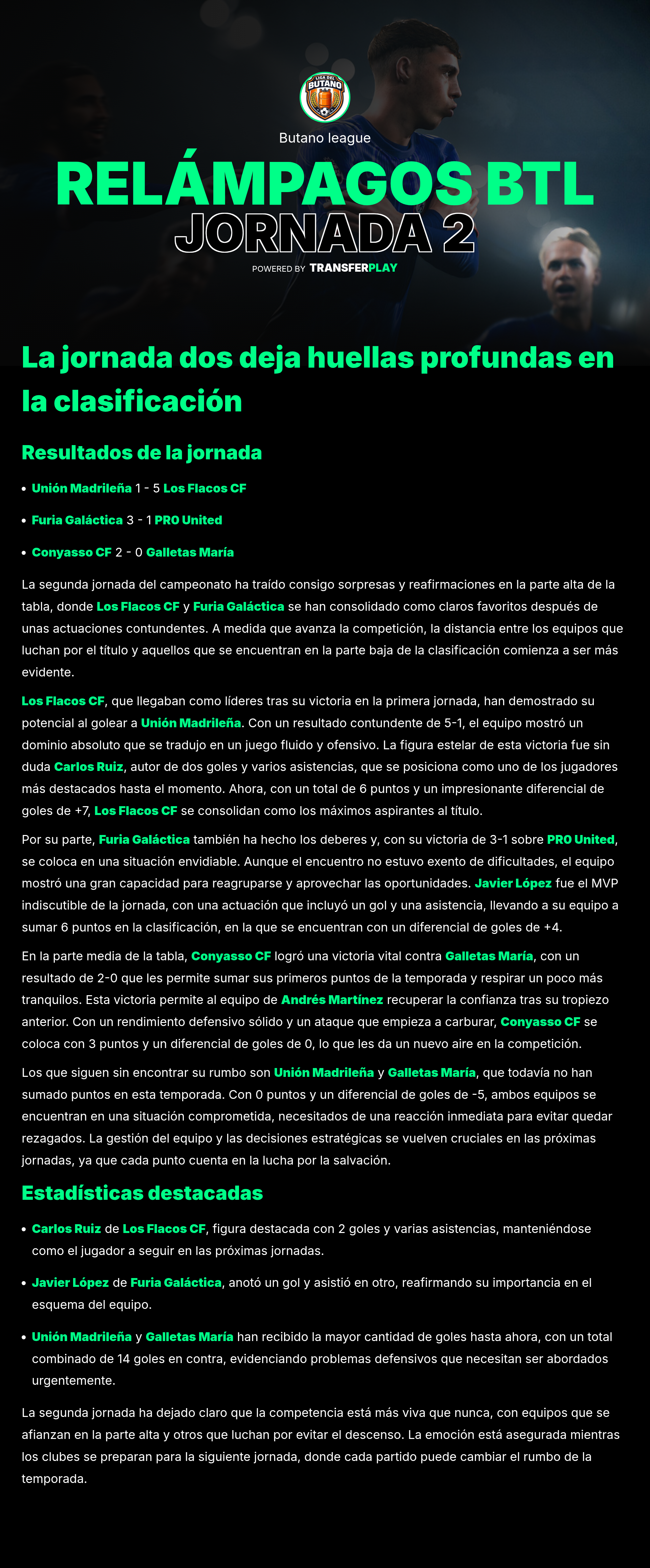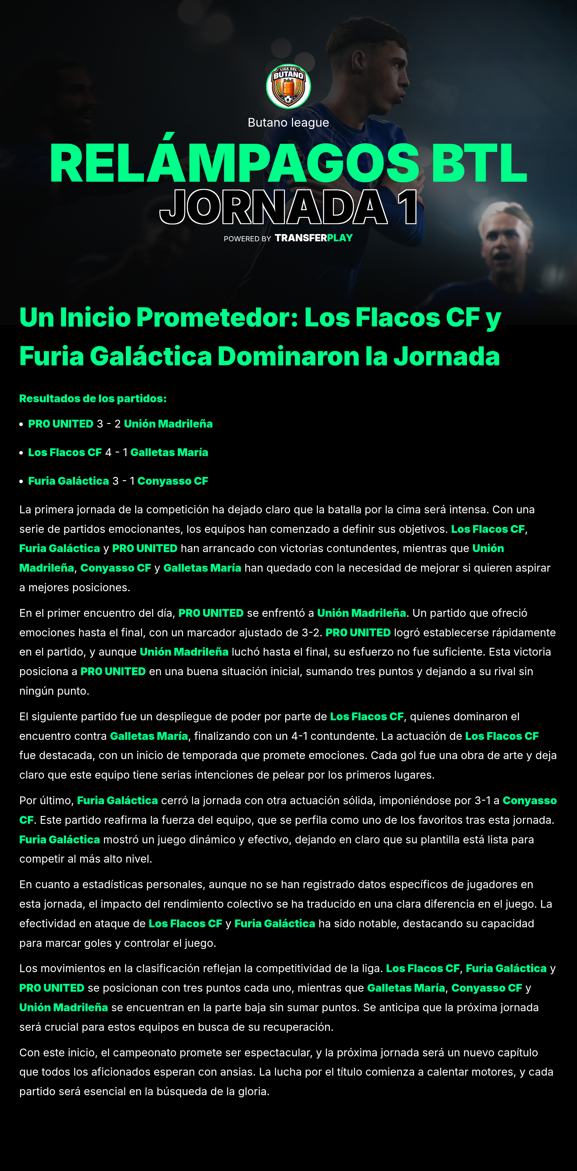 LOS FLACOS CF se lució al conseguir una aplastante victoria de 7-2 contra PR0 UNITED. Este partido fue un verdadero espectáculo, lleno de goles y jugadas espectaculares. La afición disfrutó de cada momento, y LOS FLACOS CF demuestra que tienen un ataque imparable.