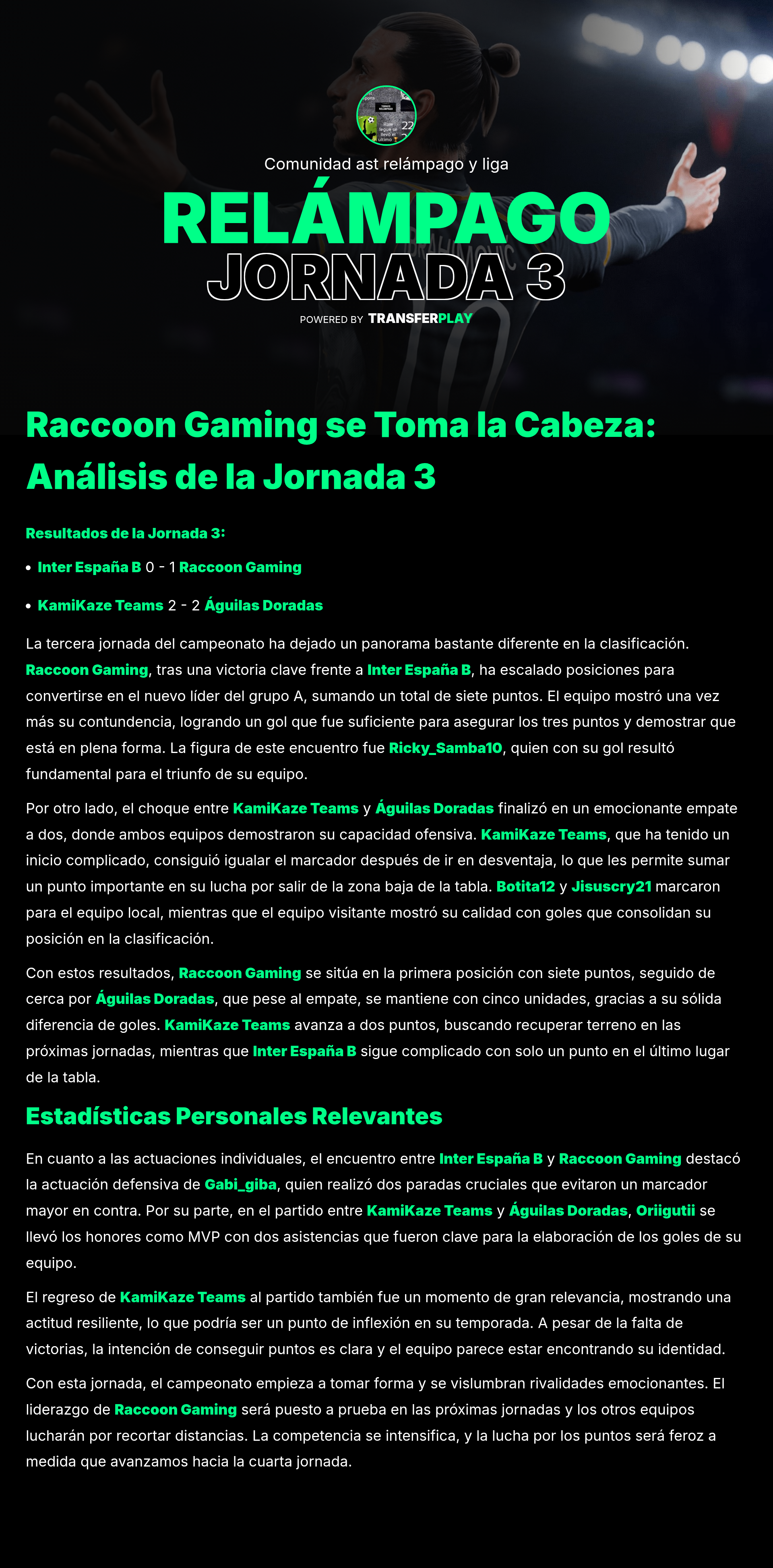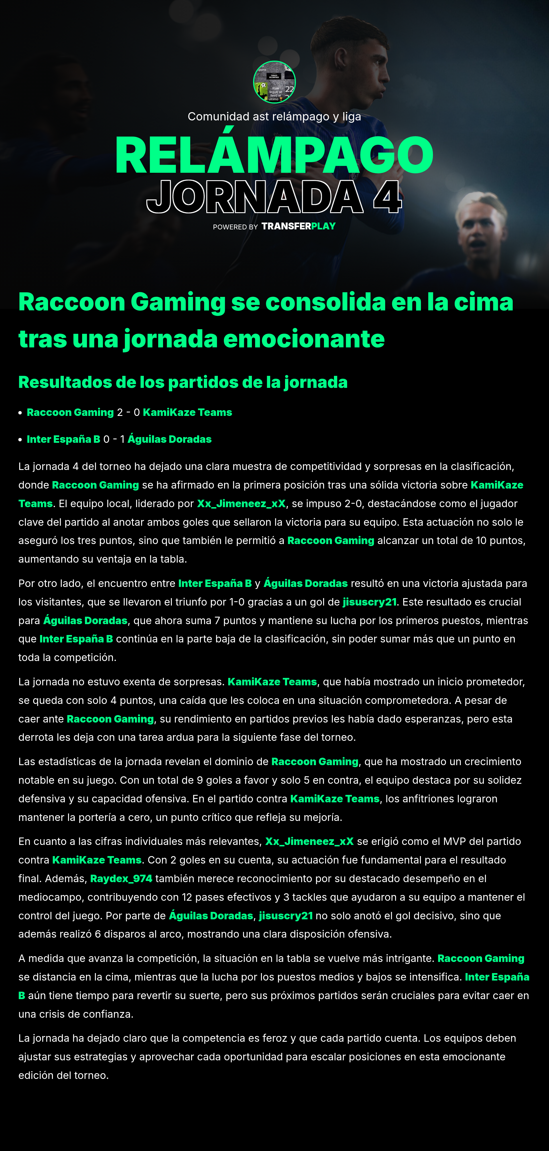 jisuscry21 no solo anotó 3 goles, sino que también asistió a otro. Su actuación estelar fue clave para la aplastante victoria de AGUILAS DORADAS. ¡Un verdadero fenómeno!