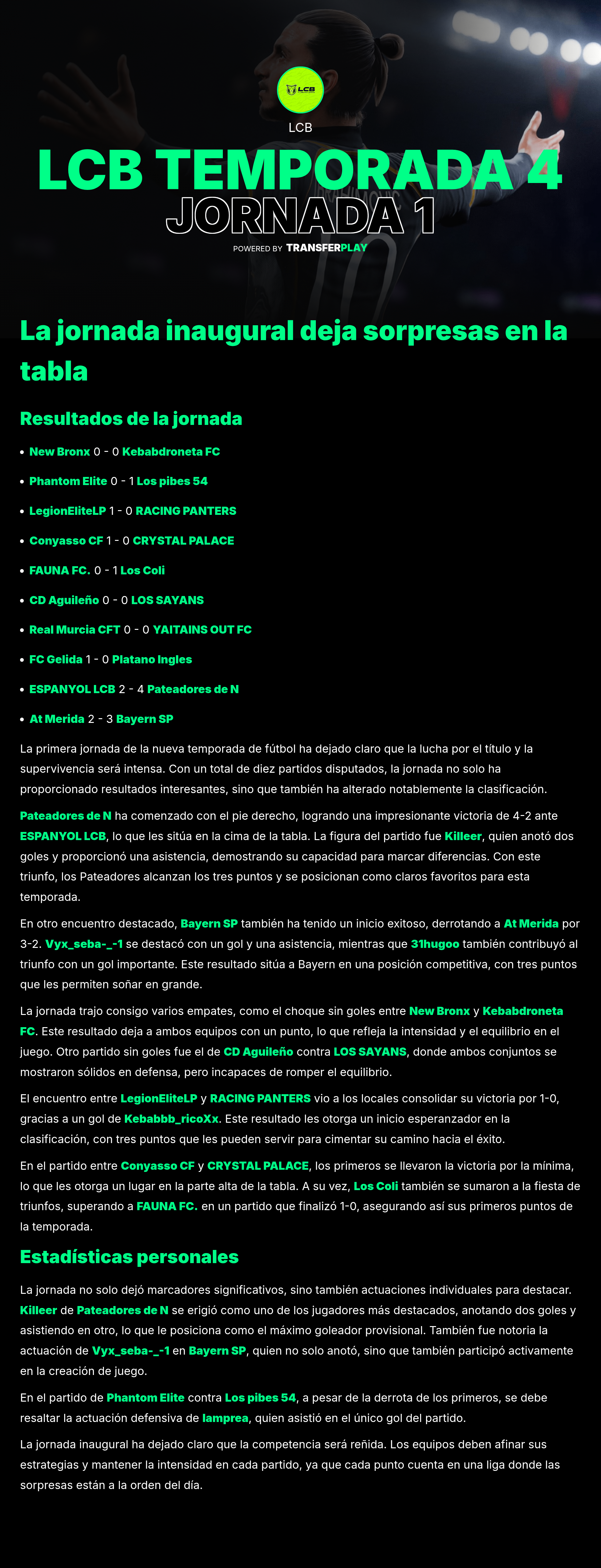 锦标赛由 LCB 在 TRANSFERPLAY 创建