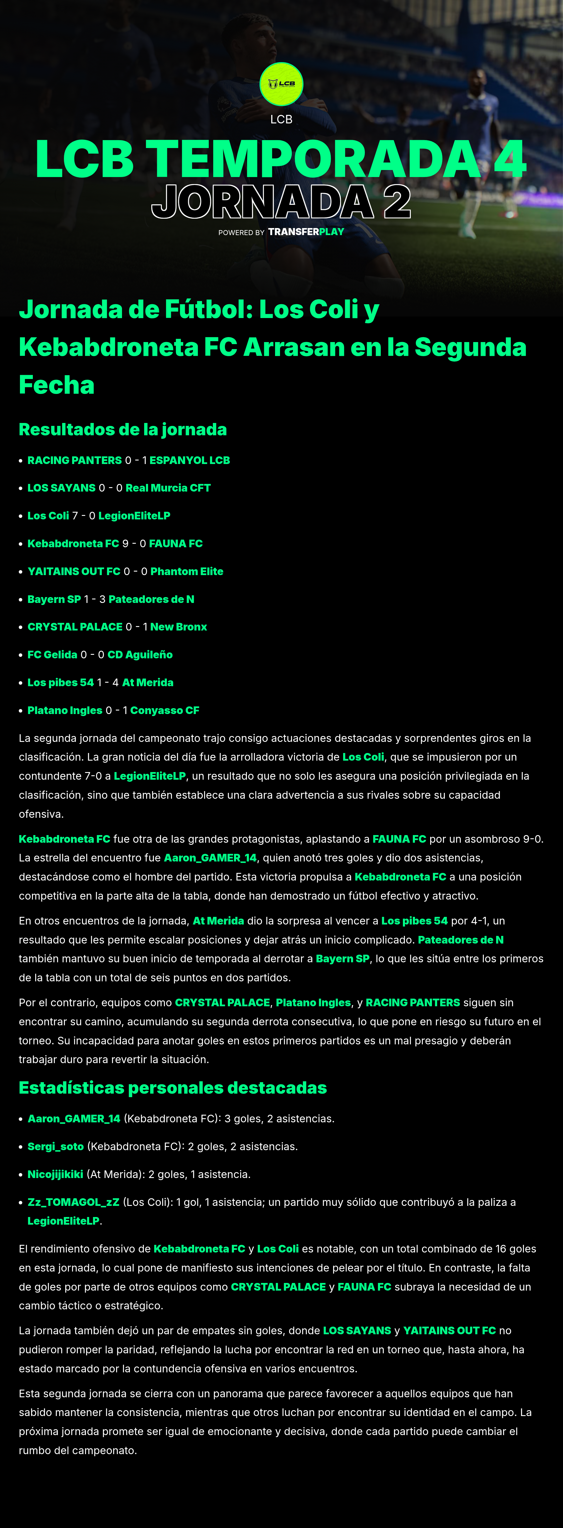 Los Coli aplastó a ESPANYOL LCB con un espectacular 5-0 en un partido donde demostraron su poderío ofensivo y dejaron claro que son un equipo a temer en esta temporada.