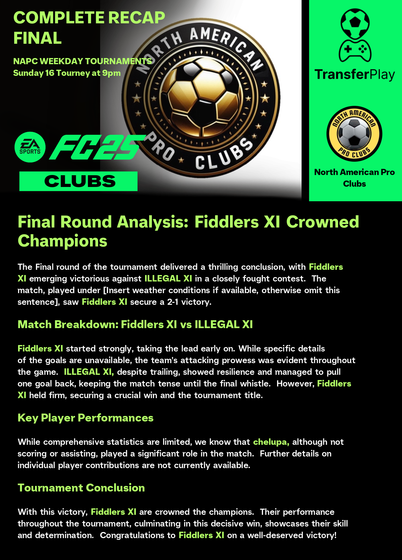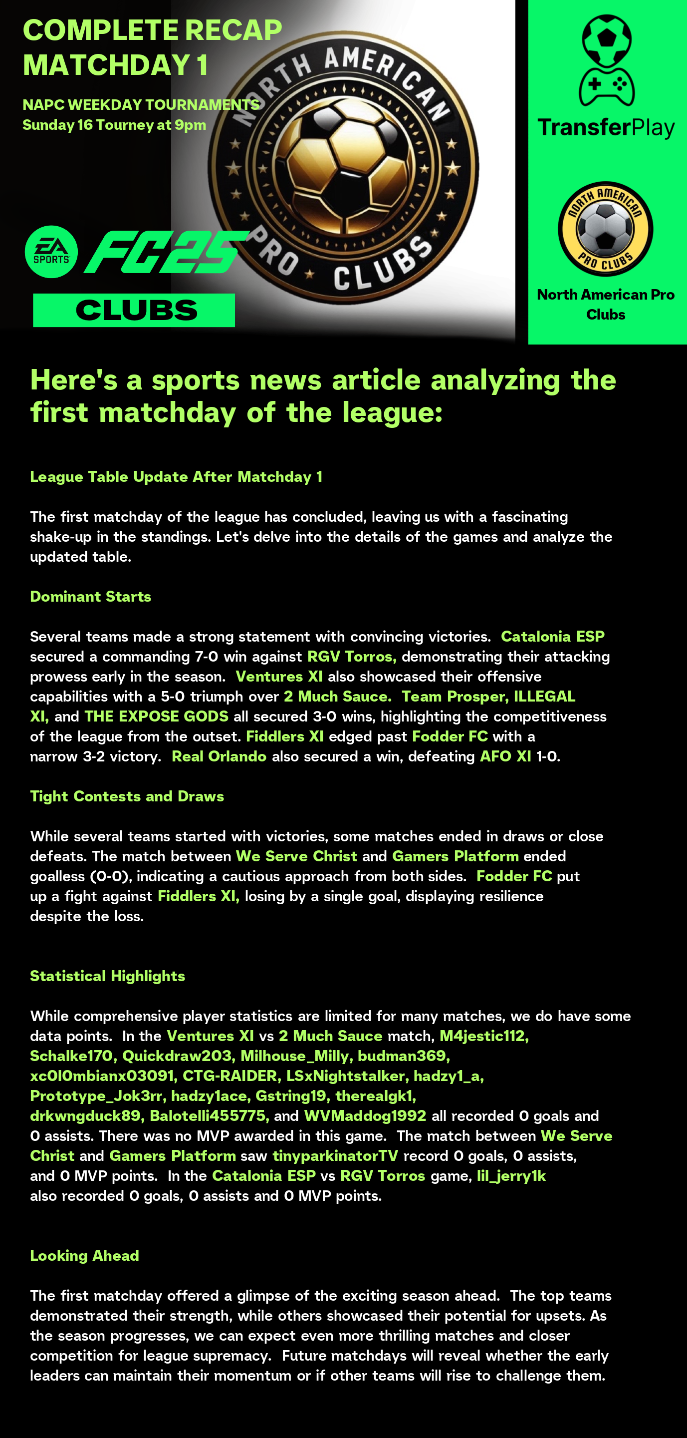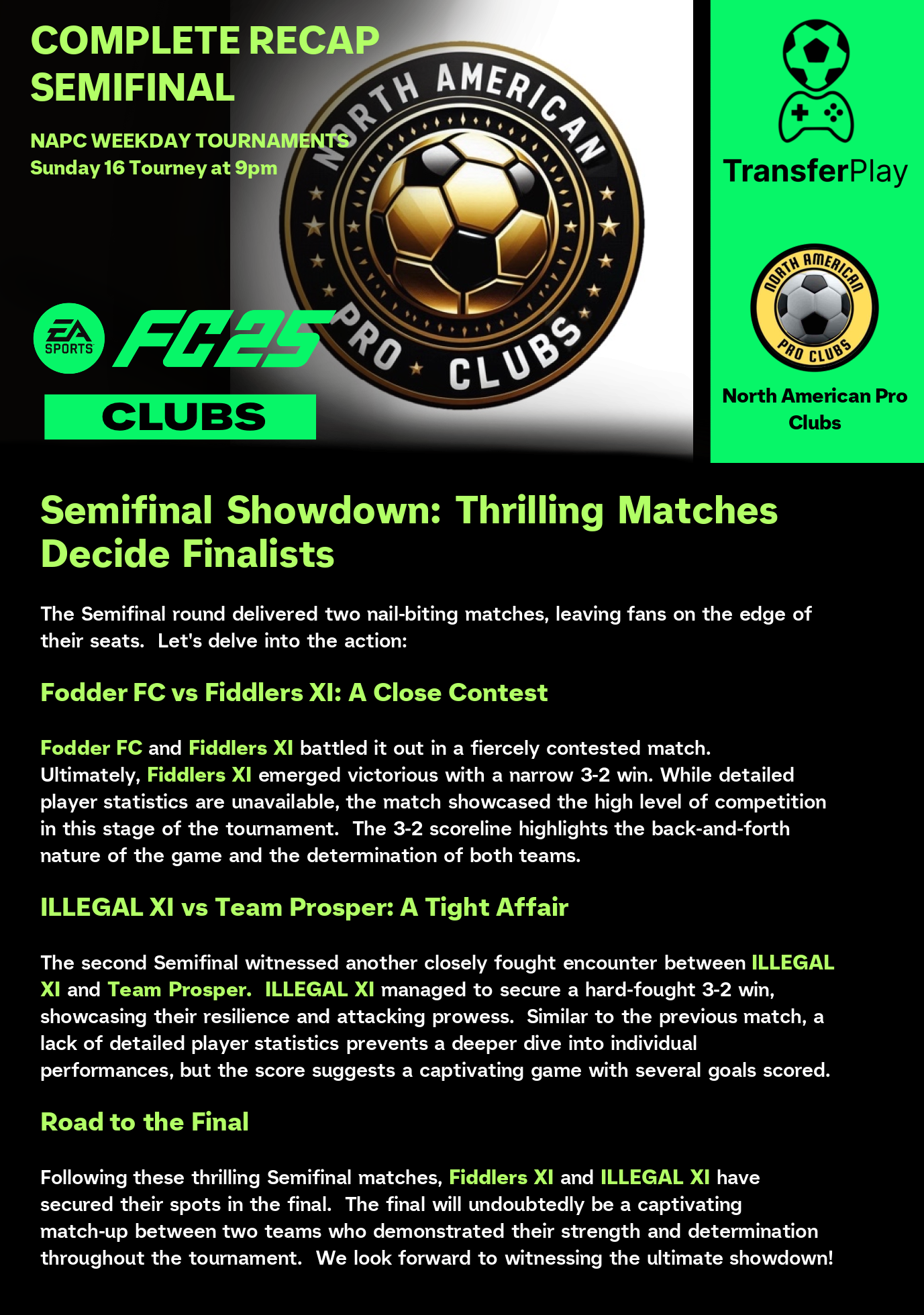 锦标赛由 NORTH AMERICAN PRO CLUBS 在 TRANSFERPLAY 创建