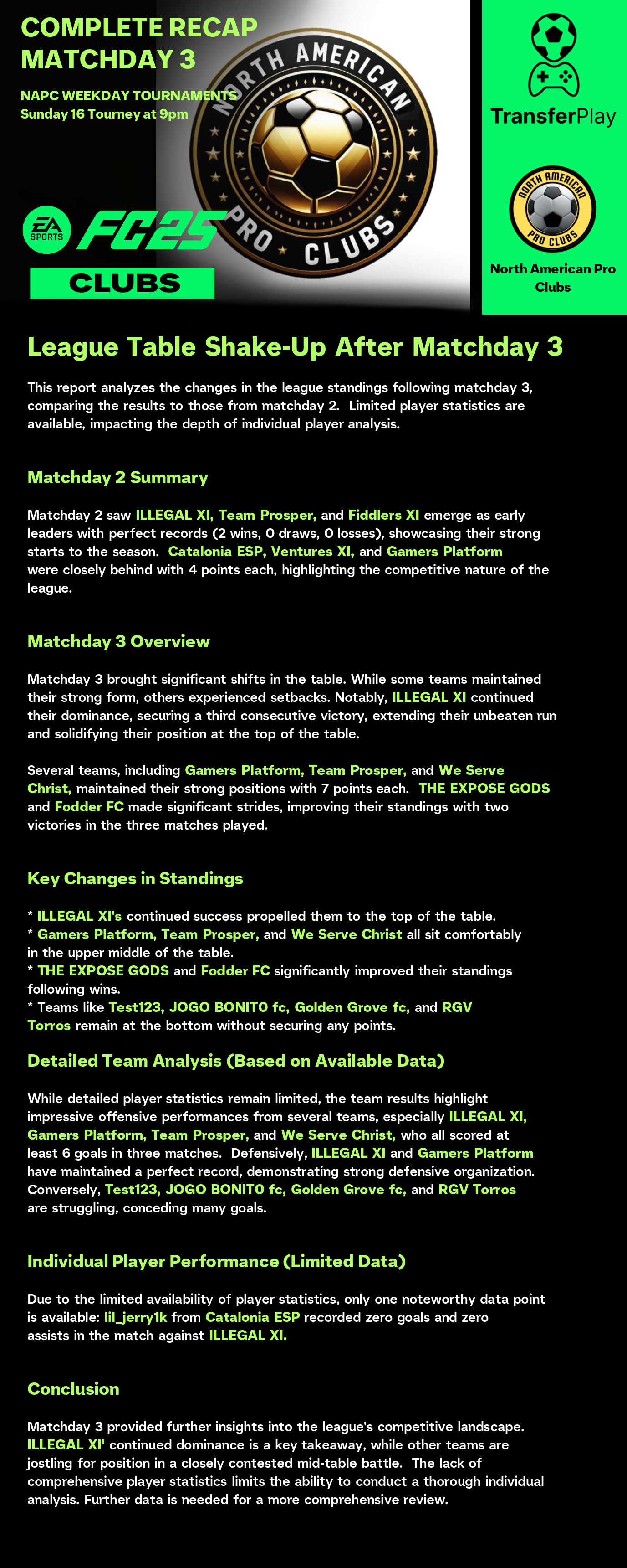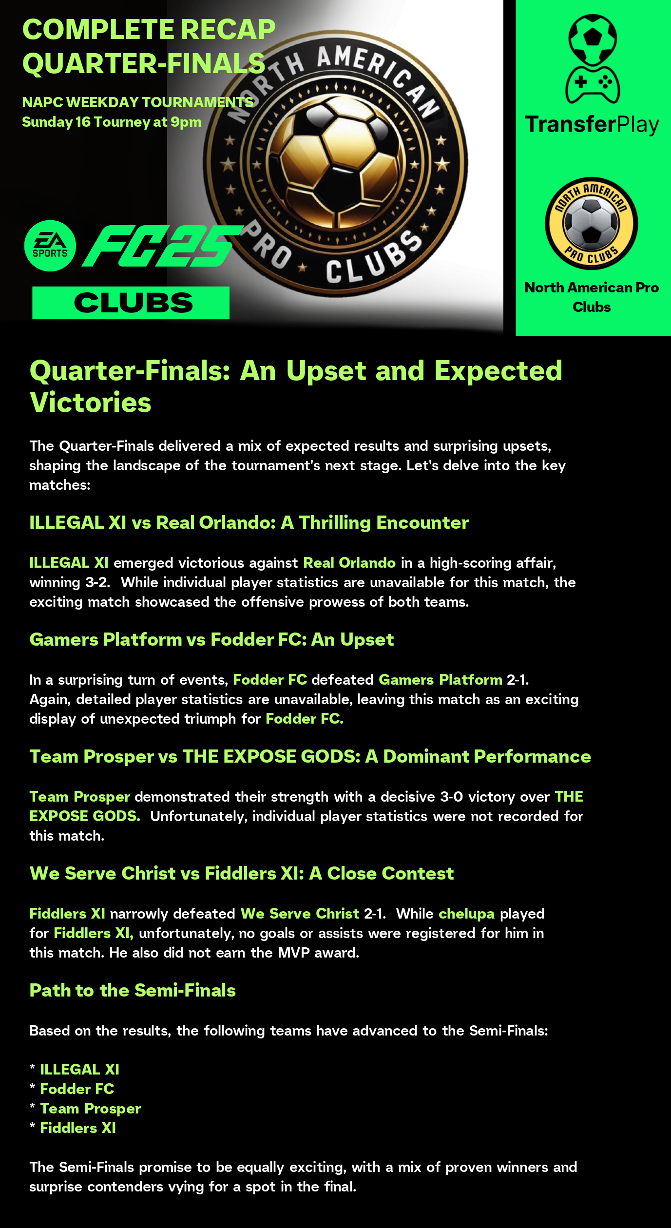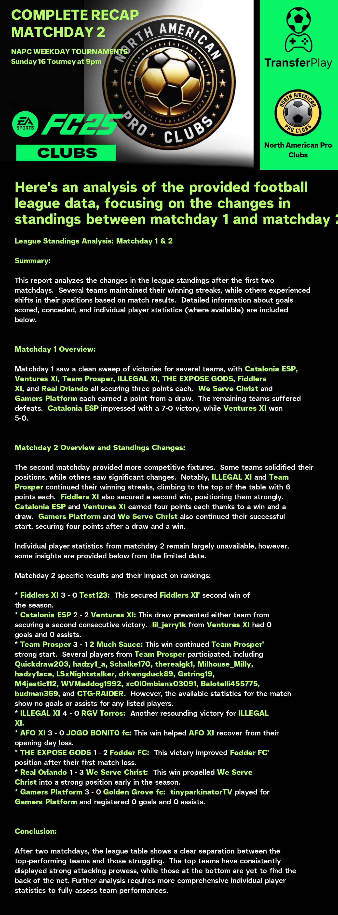 锦标赛由 NORTH AMERICAN PRO CLUBS 在 TRANSFERPLAY 创建