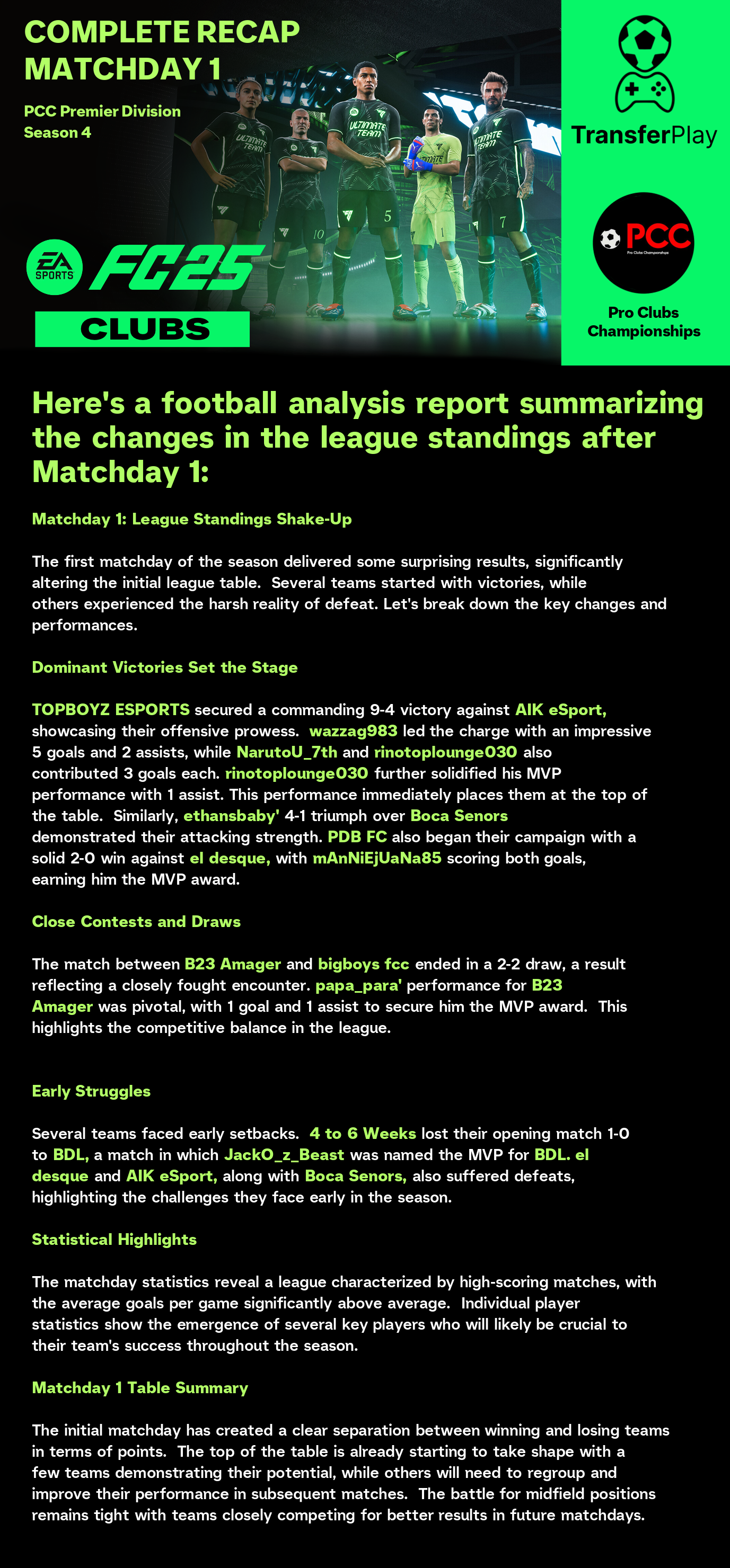 锦标赛由 PRO CLUBS CHAMPIONSHIPS 在 TRANSFERPLAY 创建